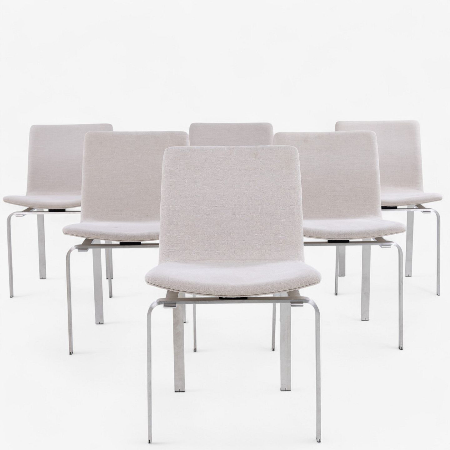 JH 3 - Sæt á 6 spisestuestole med stel i stål og sæde i natur kanvas.