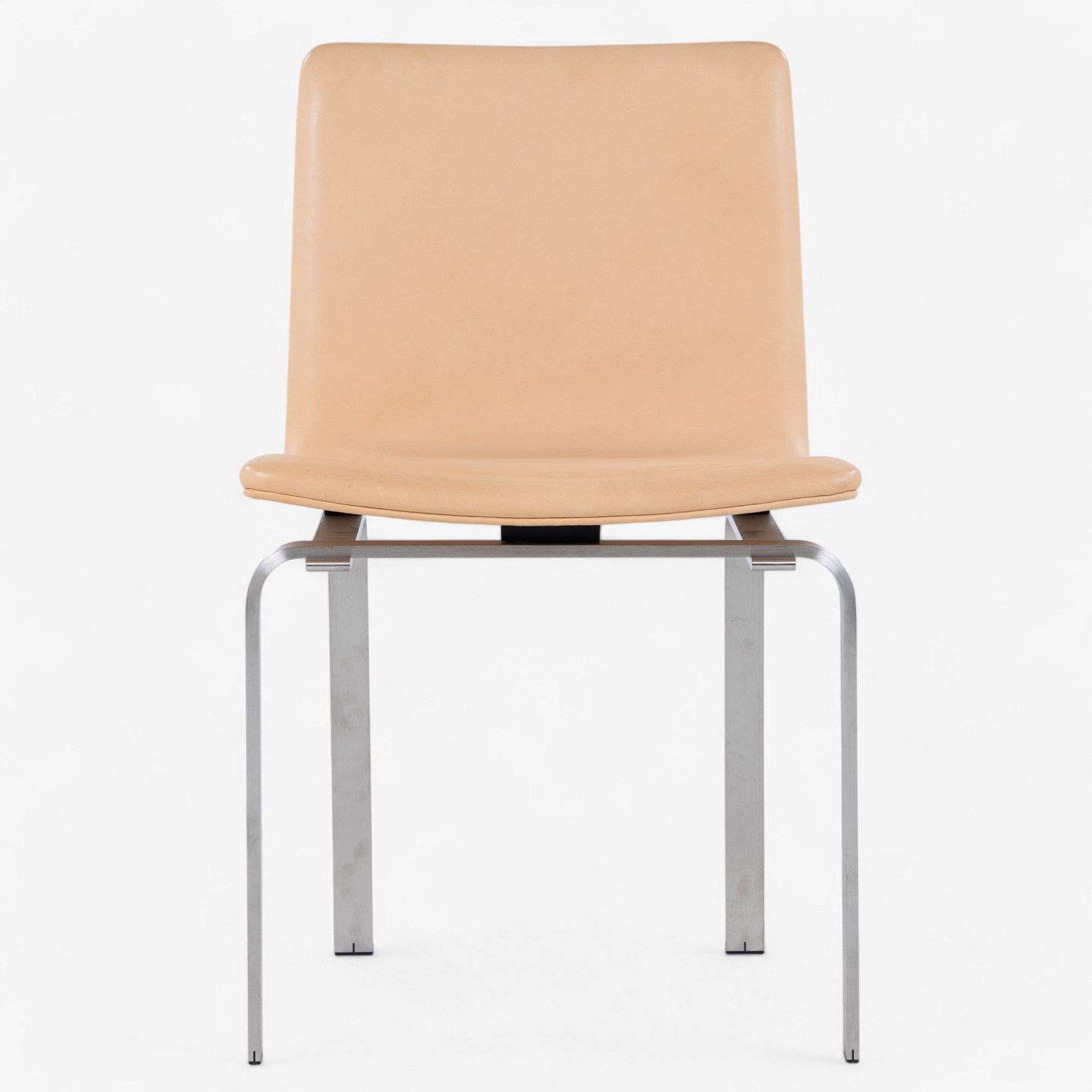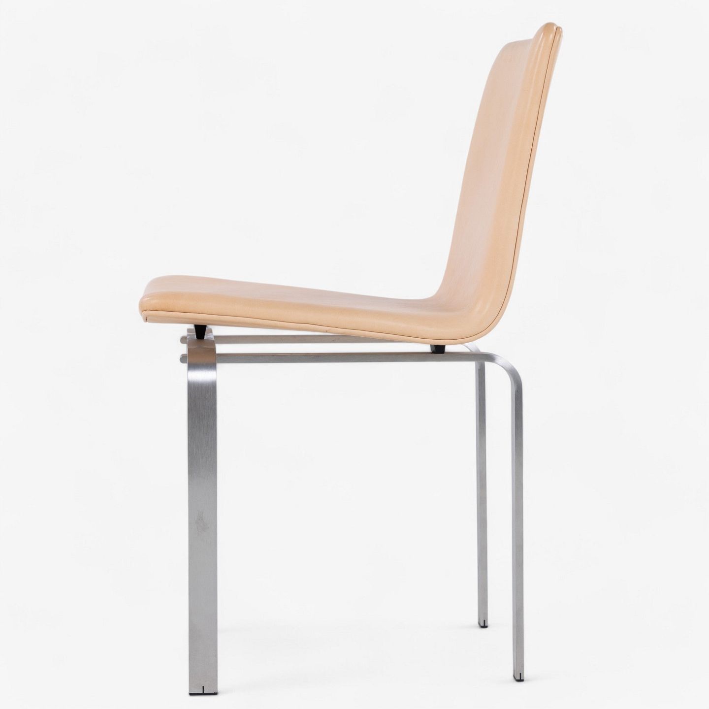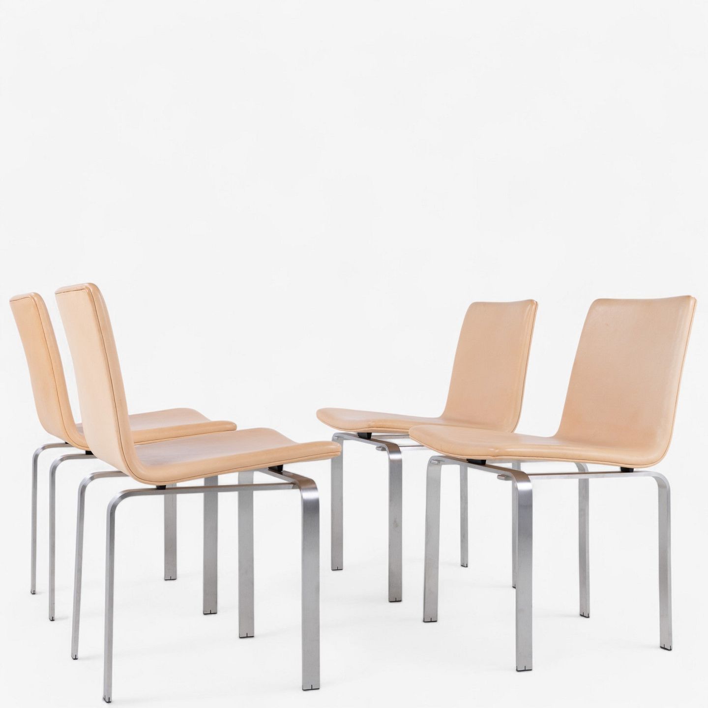 JH 3 - Sæt á 4 spisestuestole med stel i stål og sæde i vegetal naturlæder.