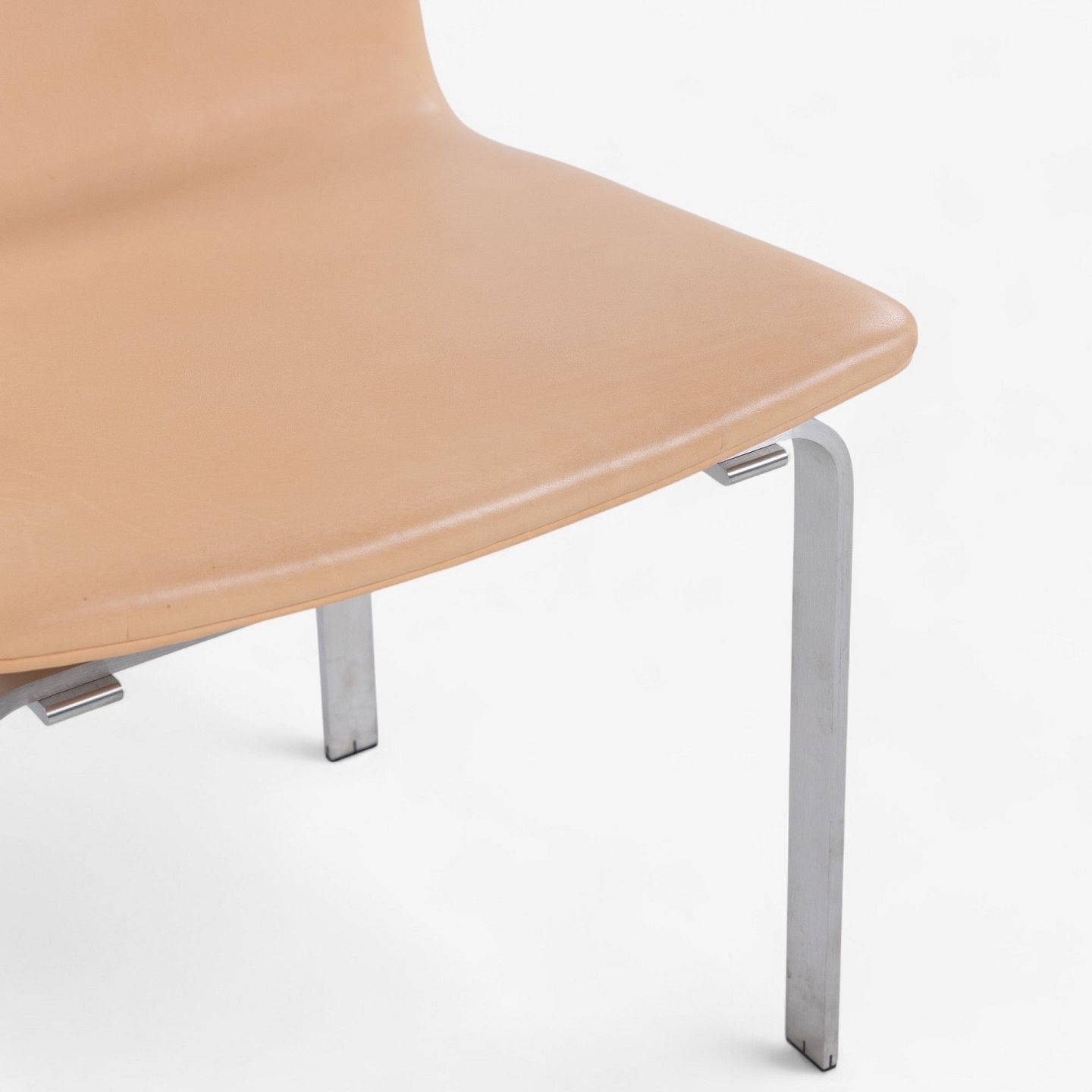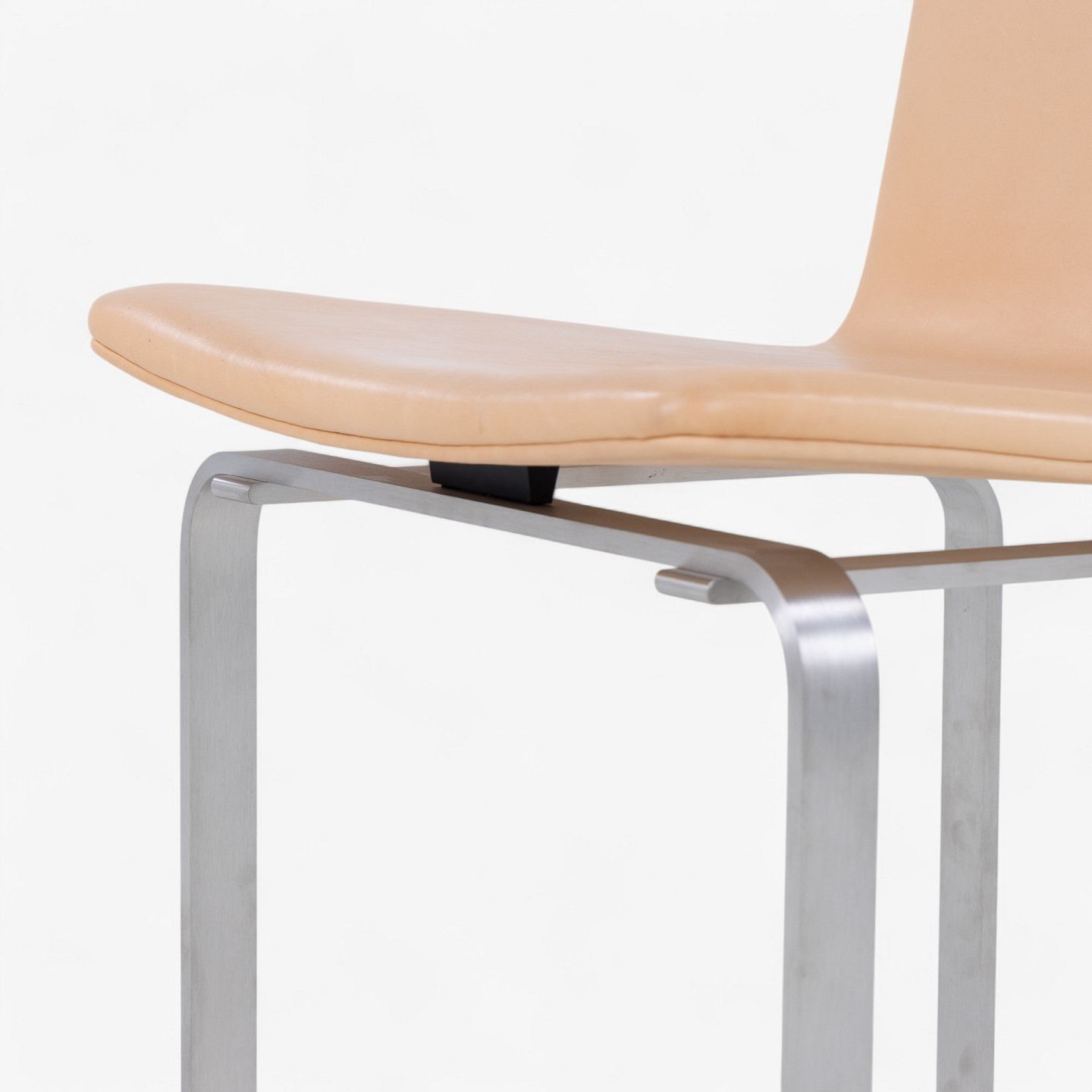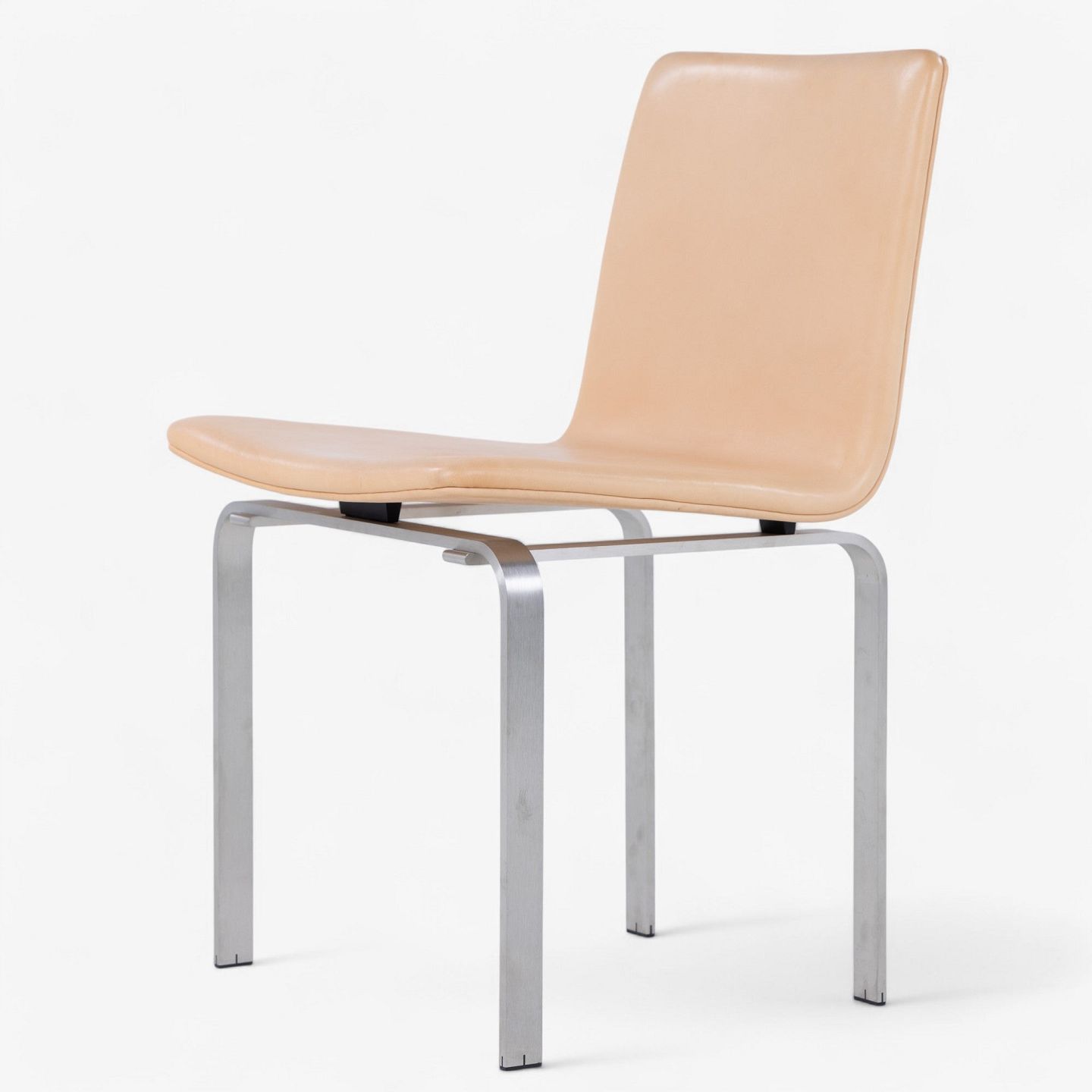 JH 3 - Sæt á 4 spisestuestole med stel i stål og sæde i vegetal naturlæder.