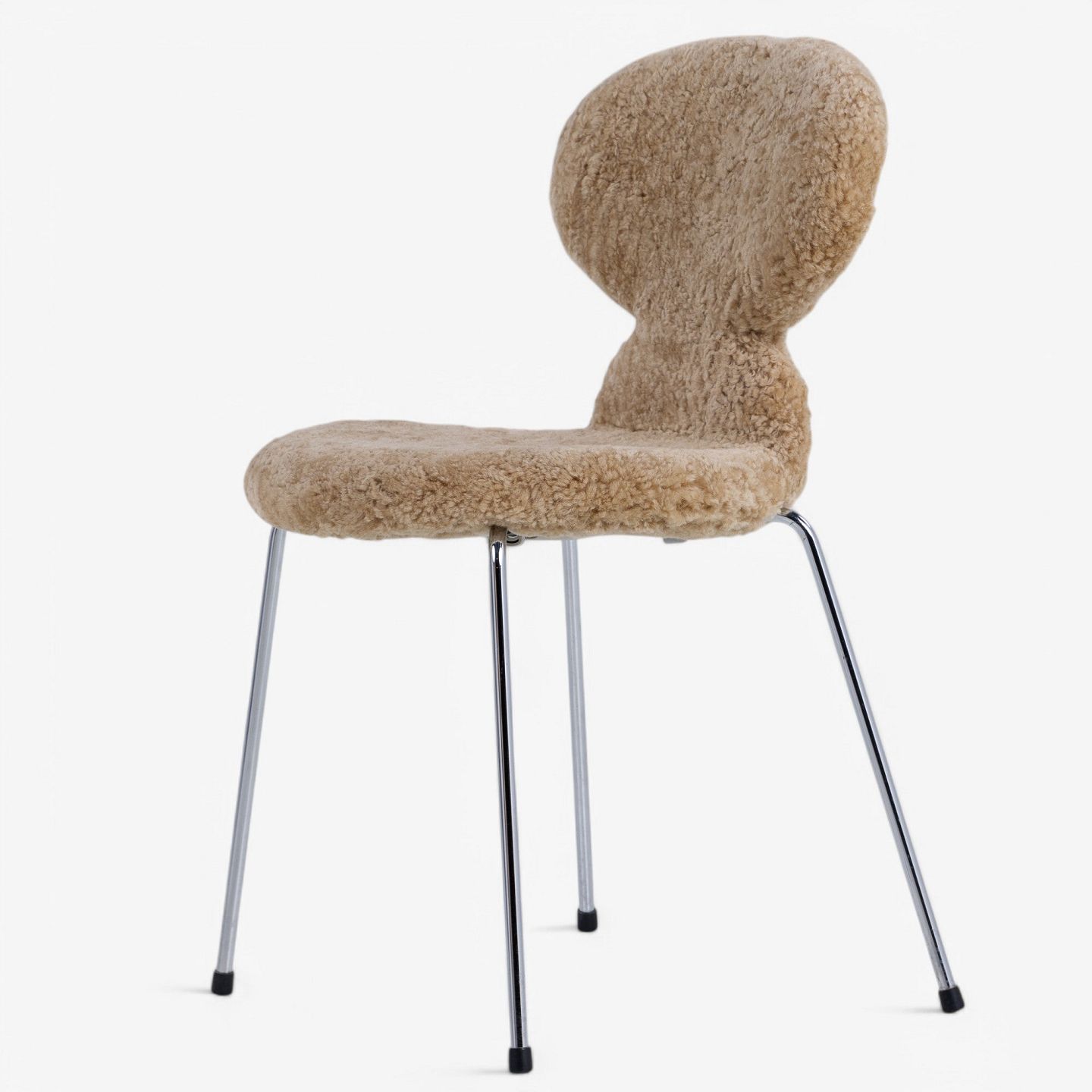 AJ 3100 - Fuldpolstret 'Myren'-stol i lammeskind (farve: Honey). Stemplet fra producent.