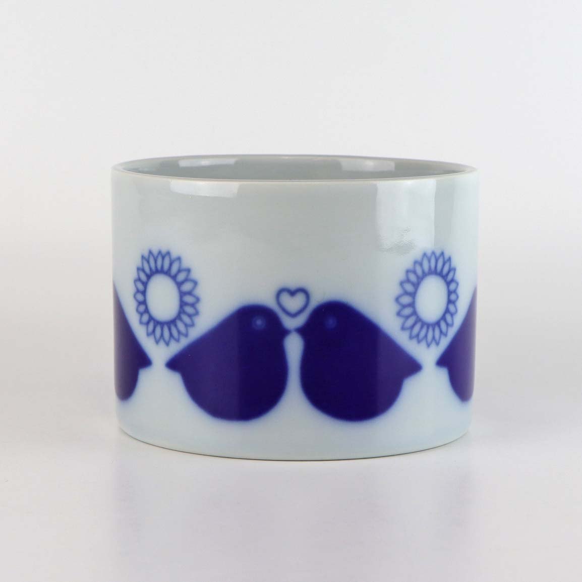 Urtepotteskjuler i lysegrå porcelæn med motiv af fuglepar med hjerte og blomster. Nr. 6020