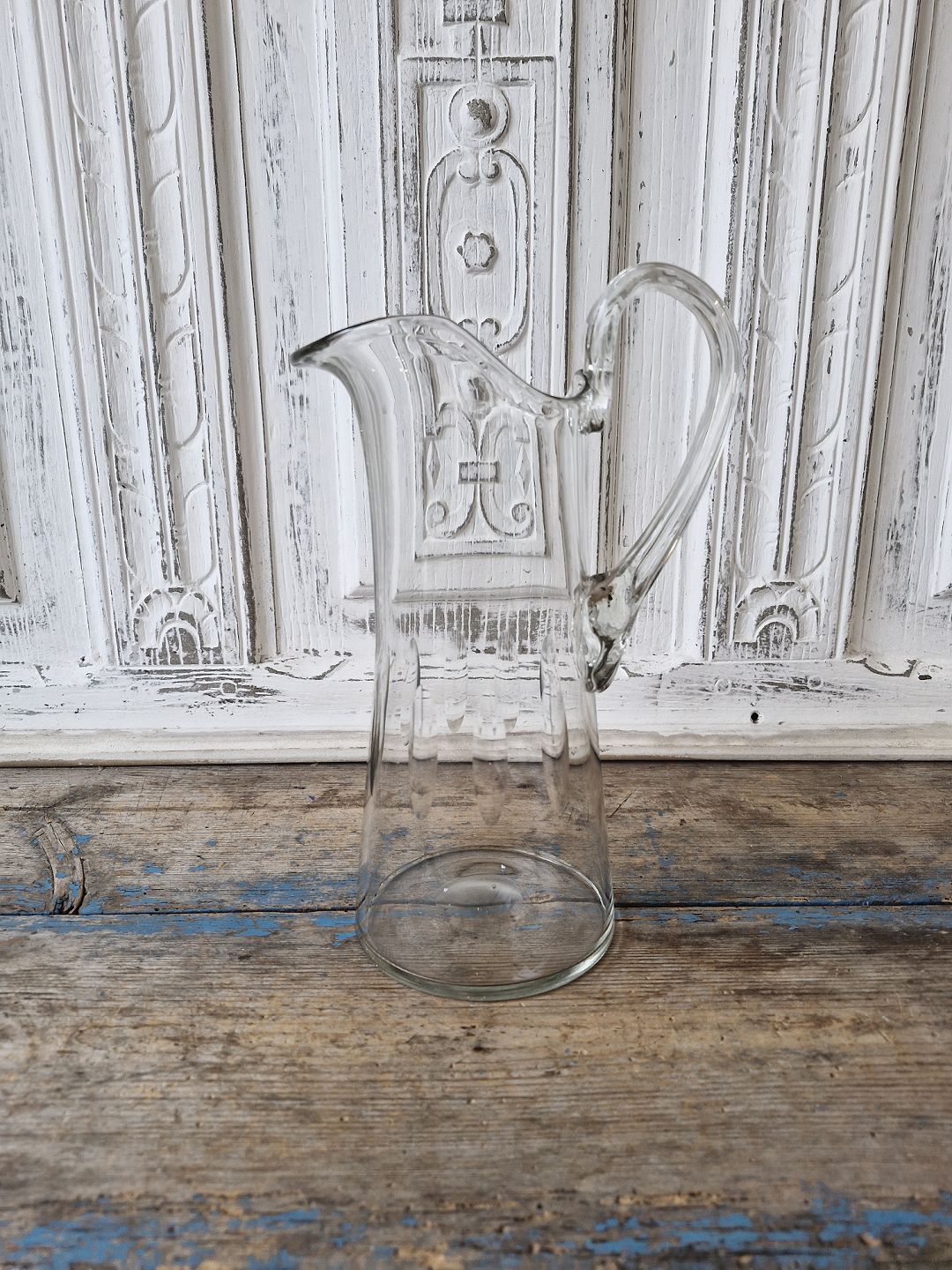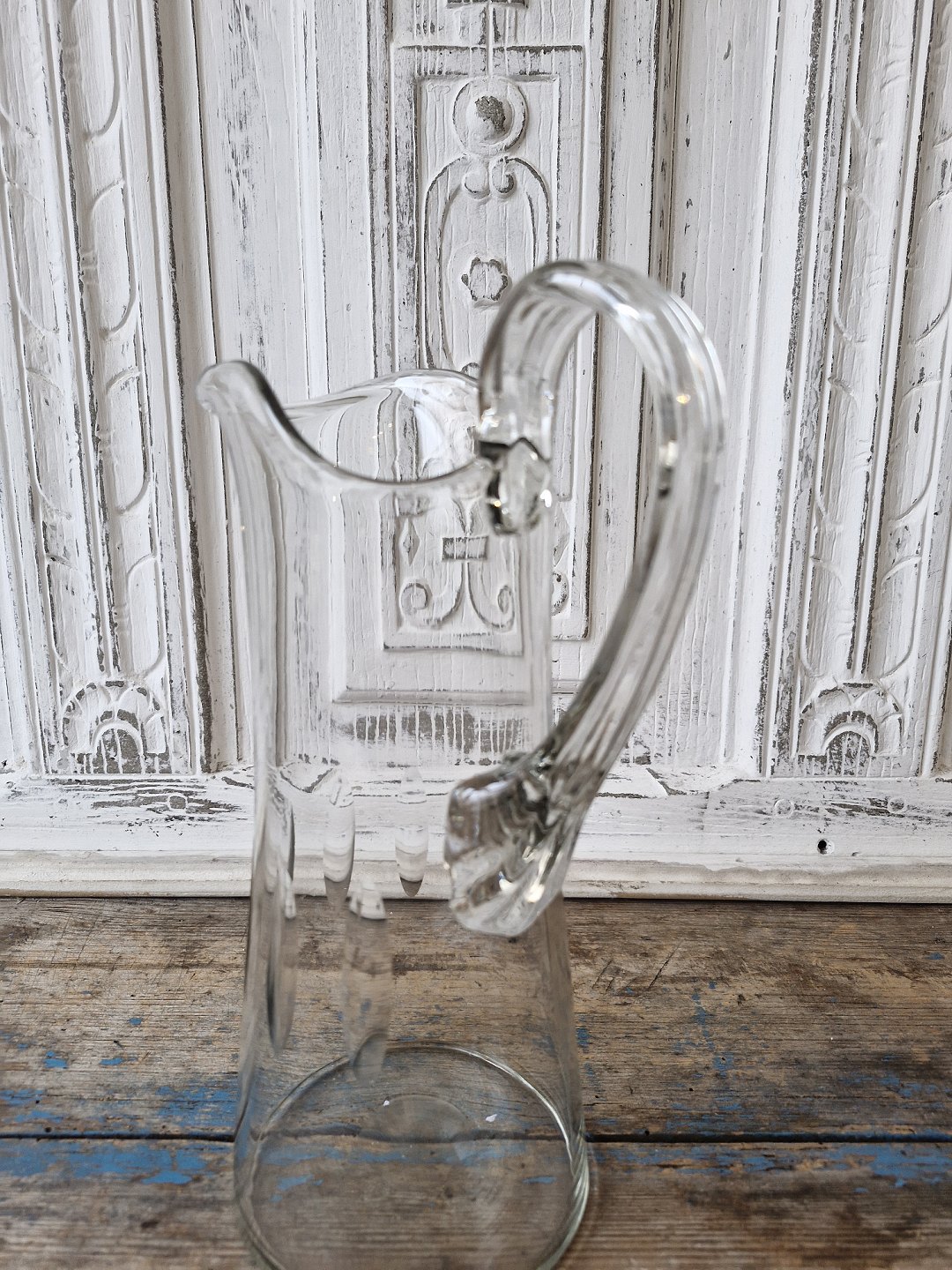 Milk jug with olive cuts and twisted handle.