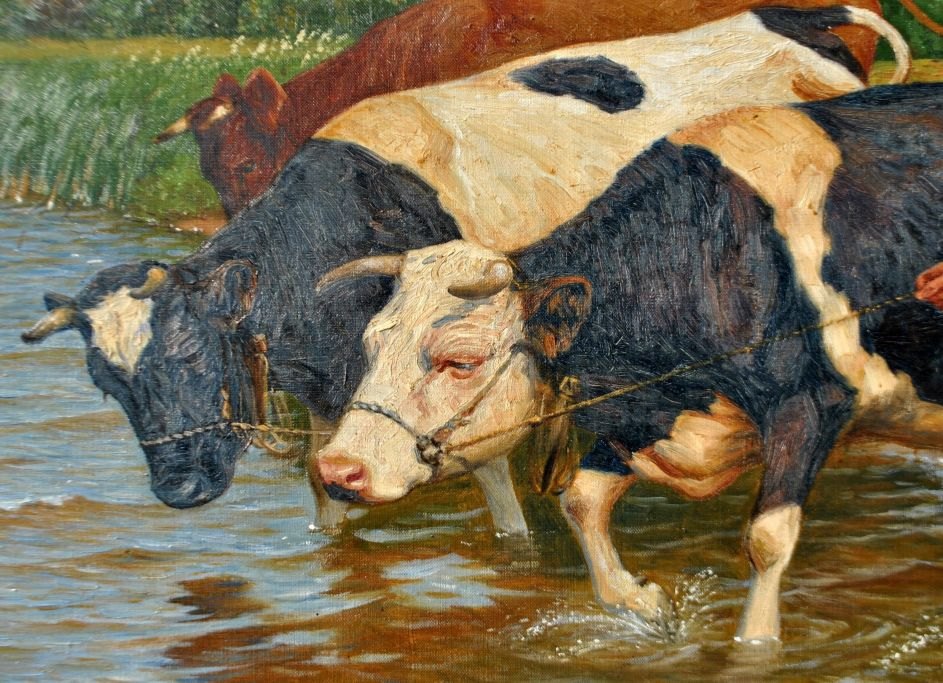 Steffensen, Poul (1866 - 1923) Danmark: Køerne vandes.