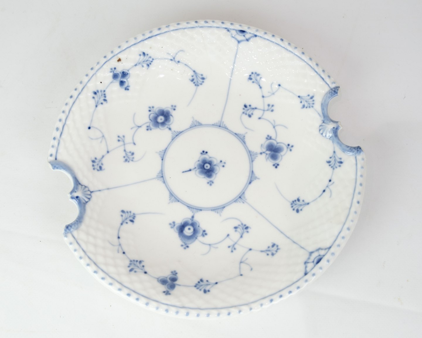 Specielt rundt fad fremstillet af B&G Blåmalet musselmalet fad med stempel nr. 8 på bagsiden af fadet.