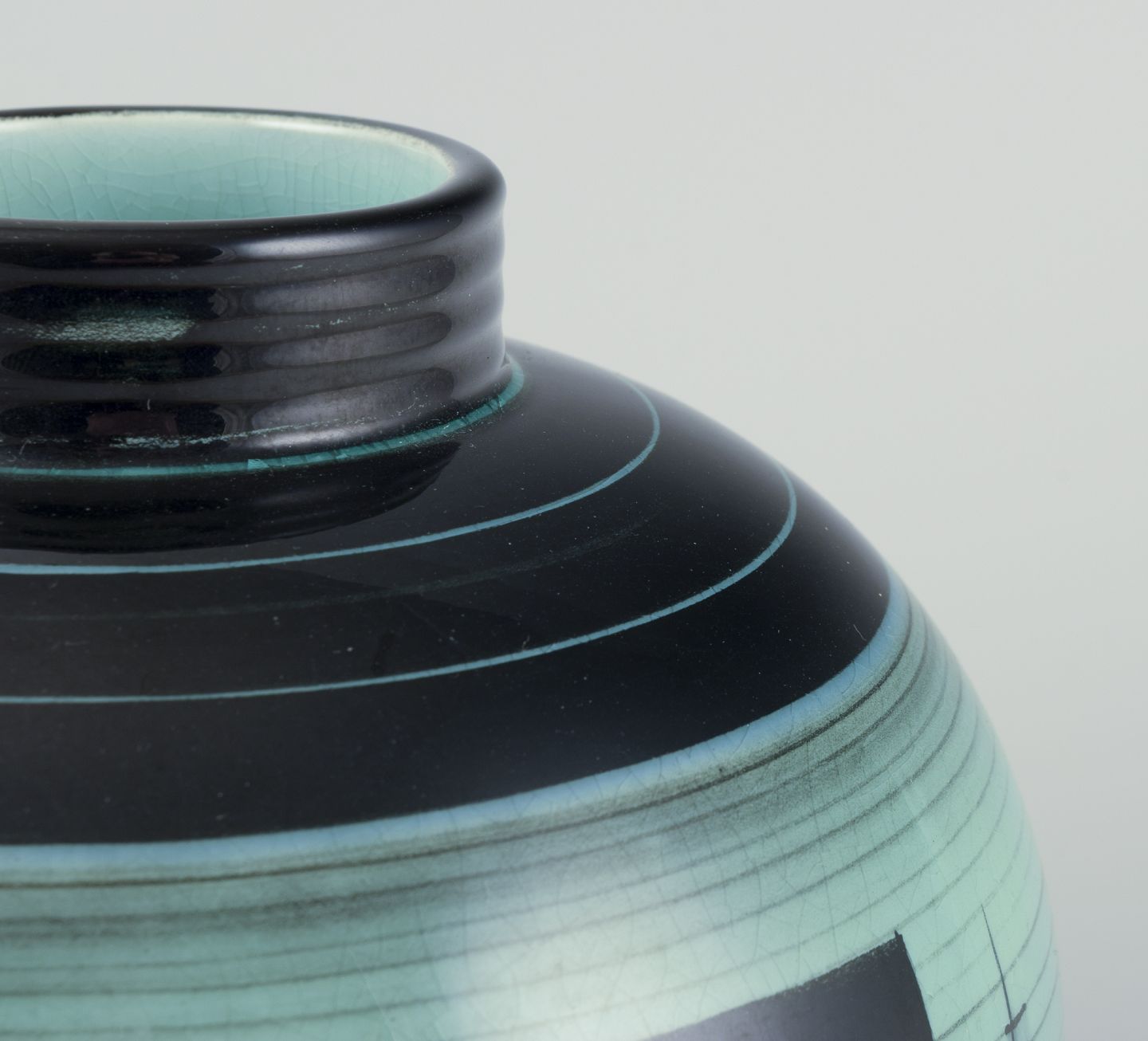 Stor og rund vase i glaseret fajance. Art Deco. Bauhaus inspireret dekoration.