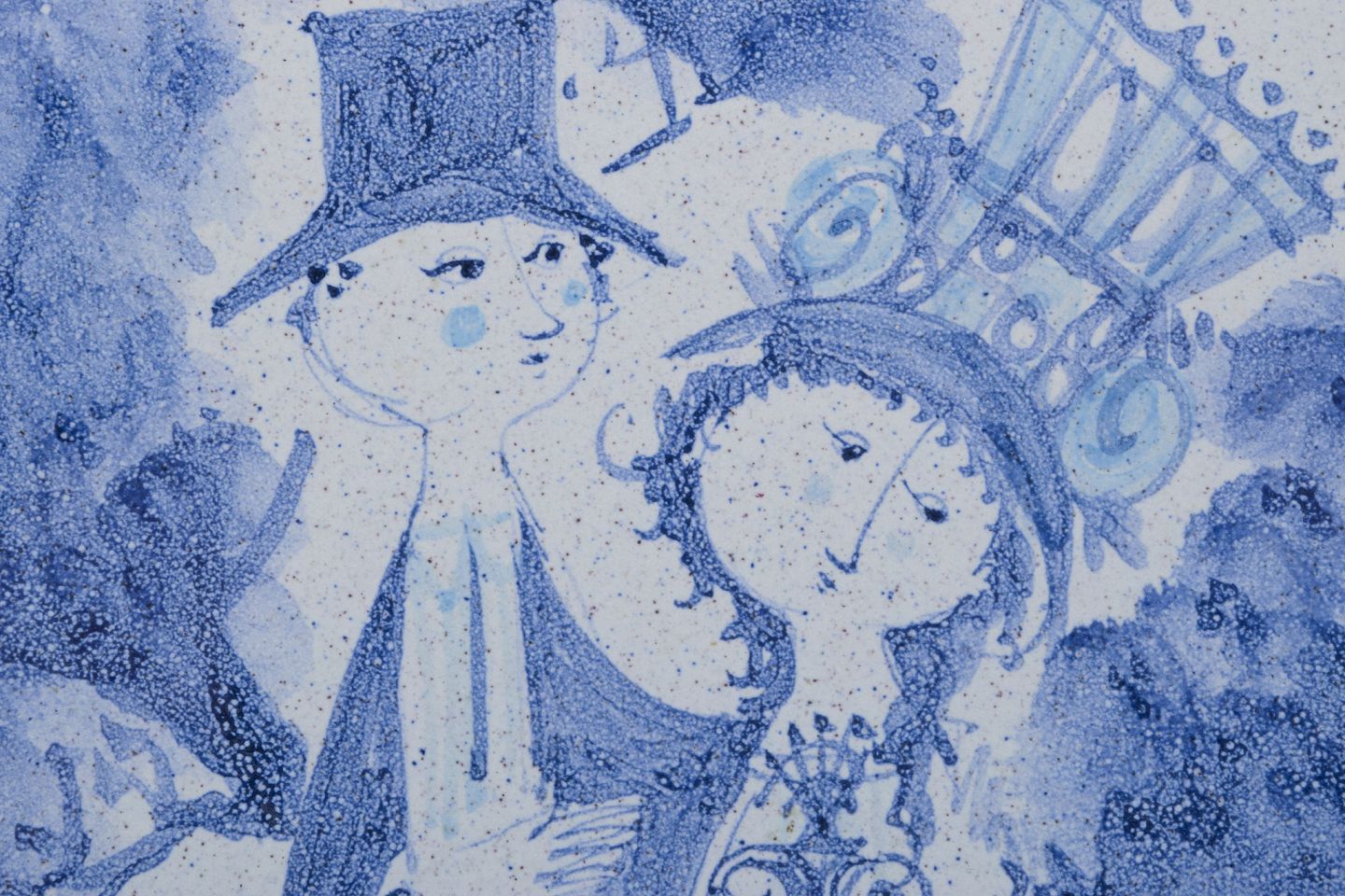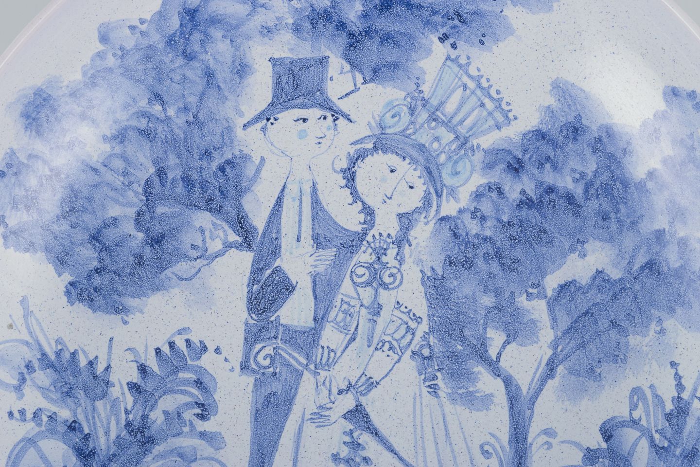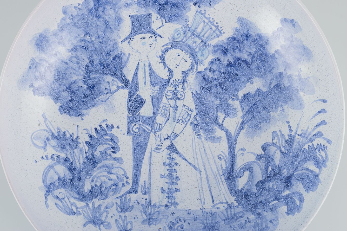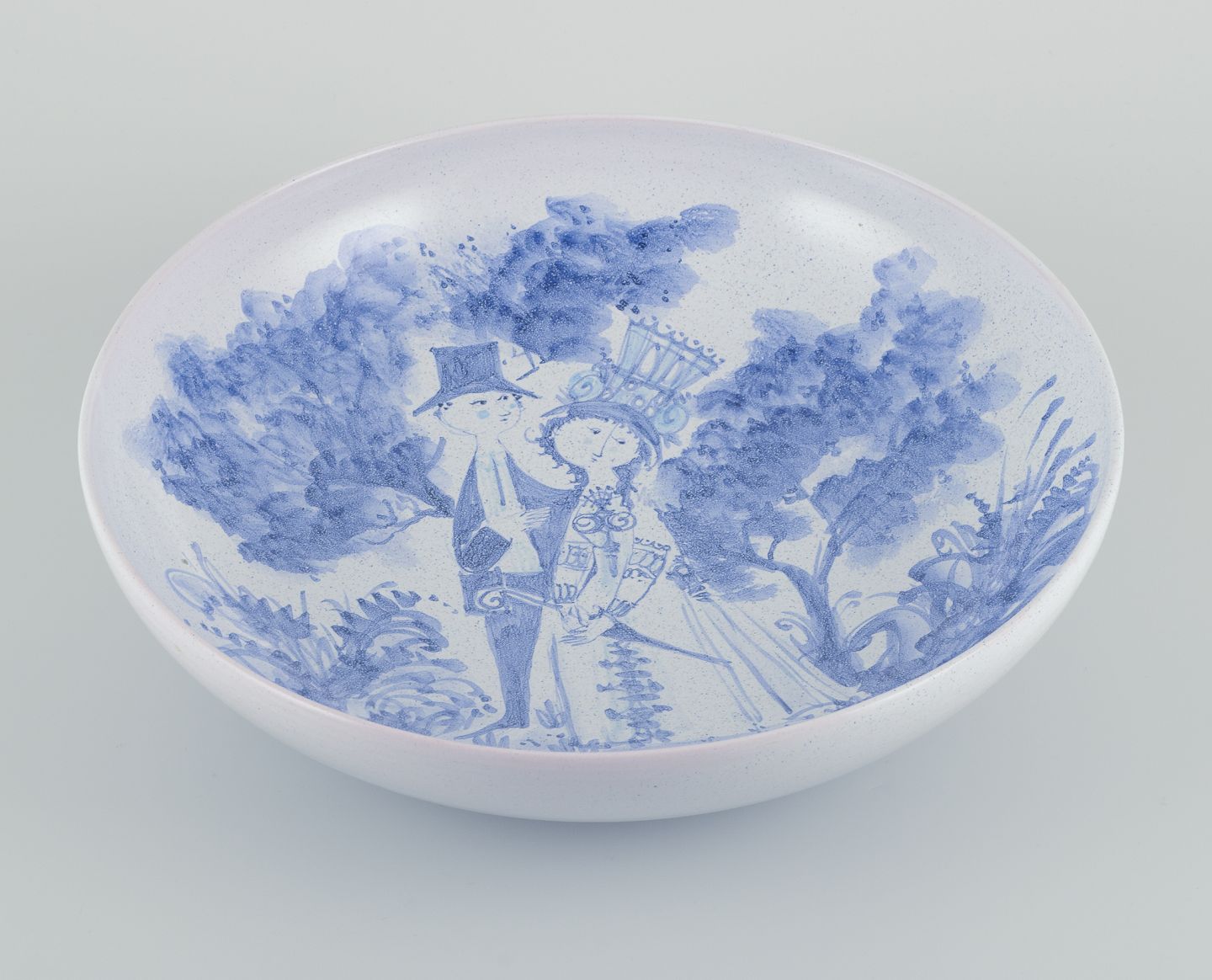 Bjørn Wiinblad (1918-2006), Det Blå Hus, eget værksted. Stor skål i keramik. Håndmalet i blåt. Motiv af brudepar.