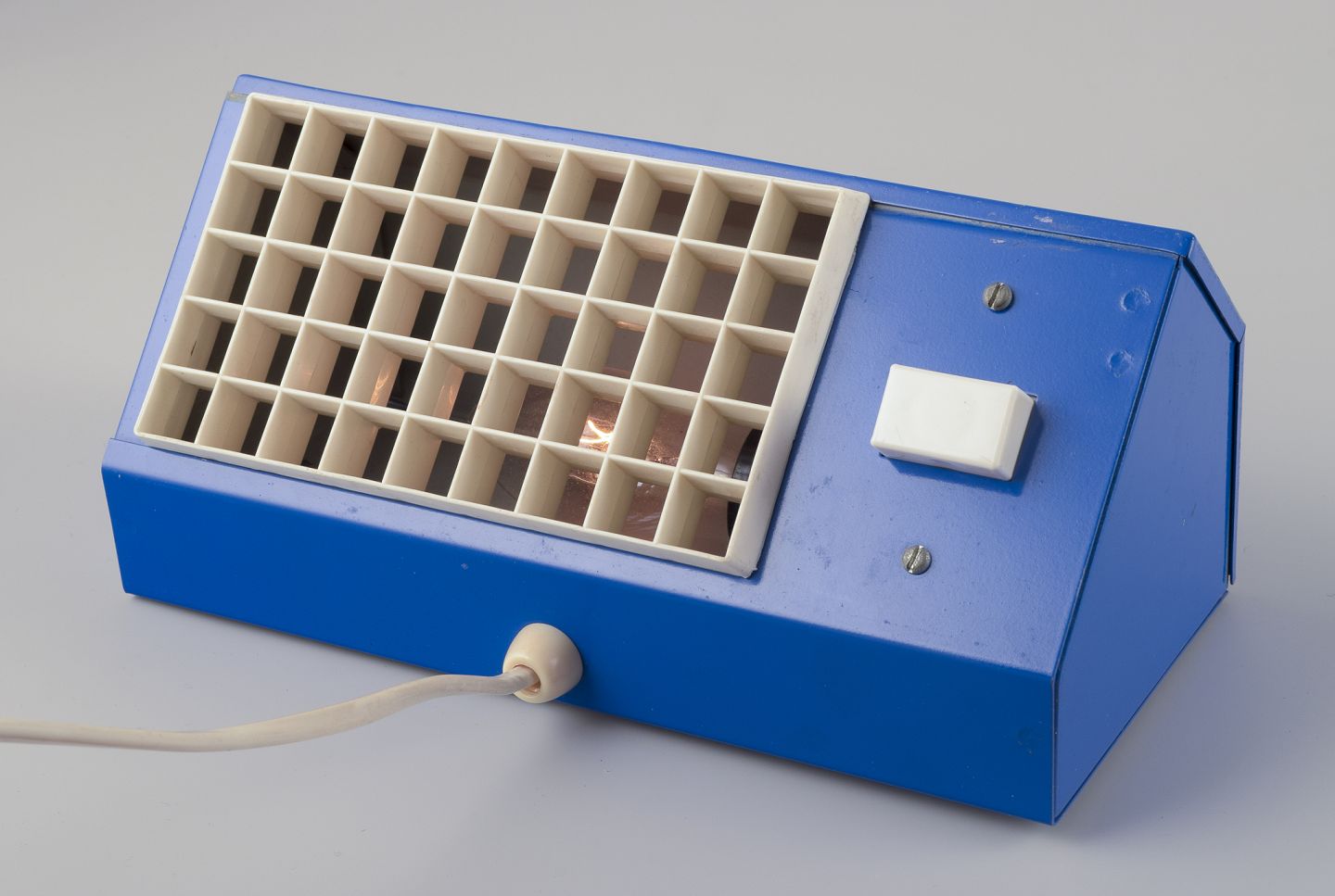 "Elidus" bedside lamp in blue-lacquered metal.