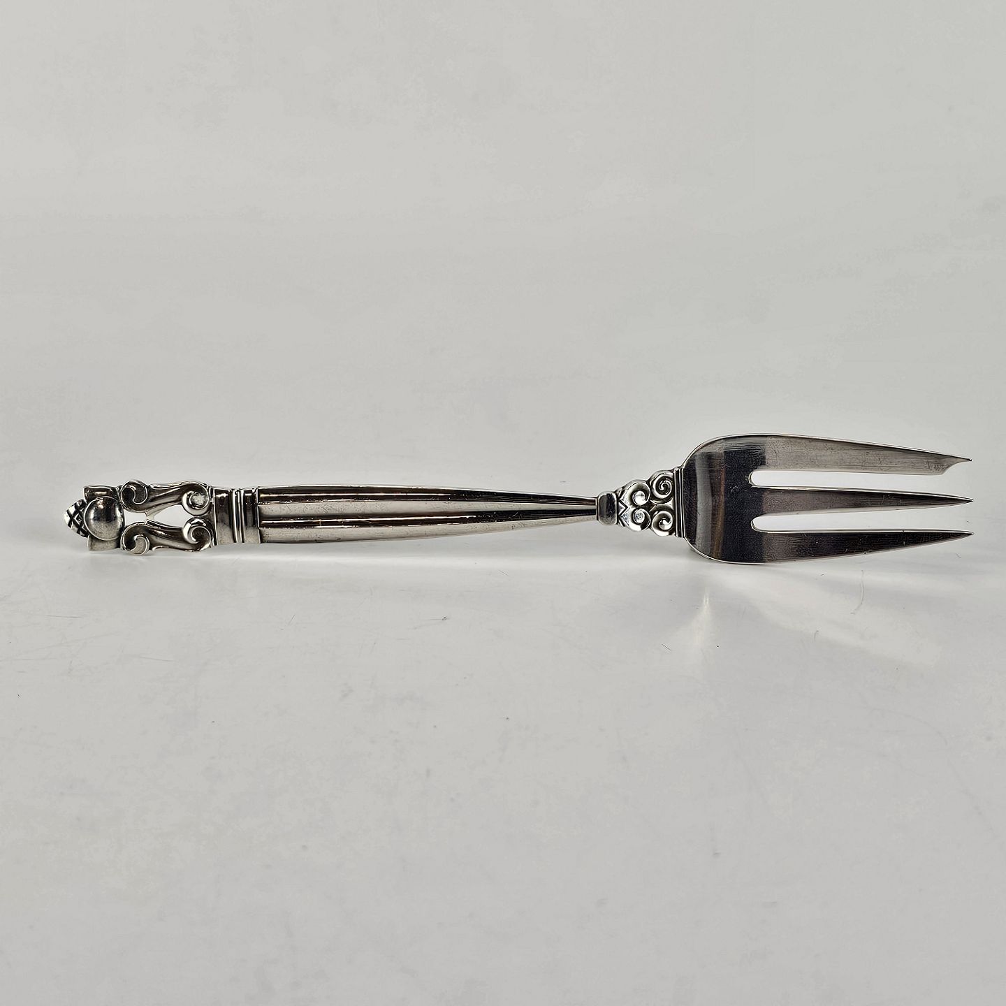 Pålægsgaffel i sterlingsølv, fra bestikmønsteret Konge, fra Georg Jensen.