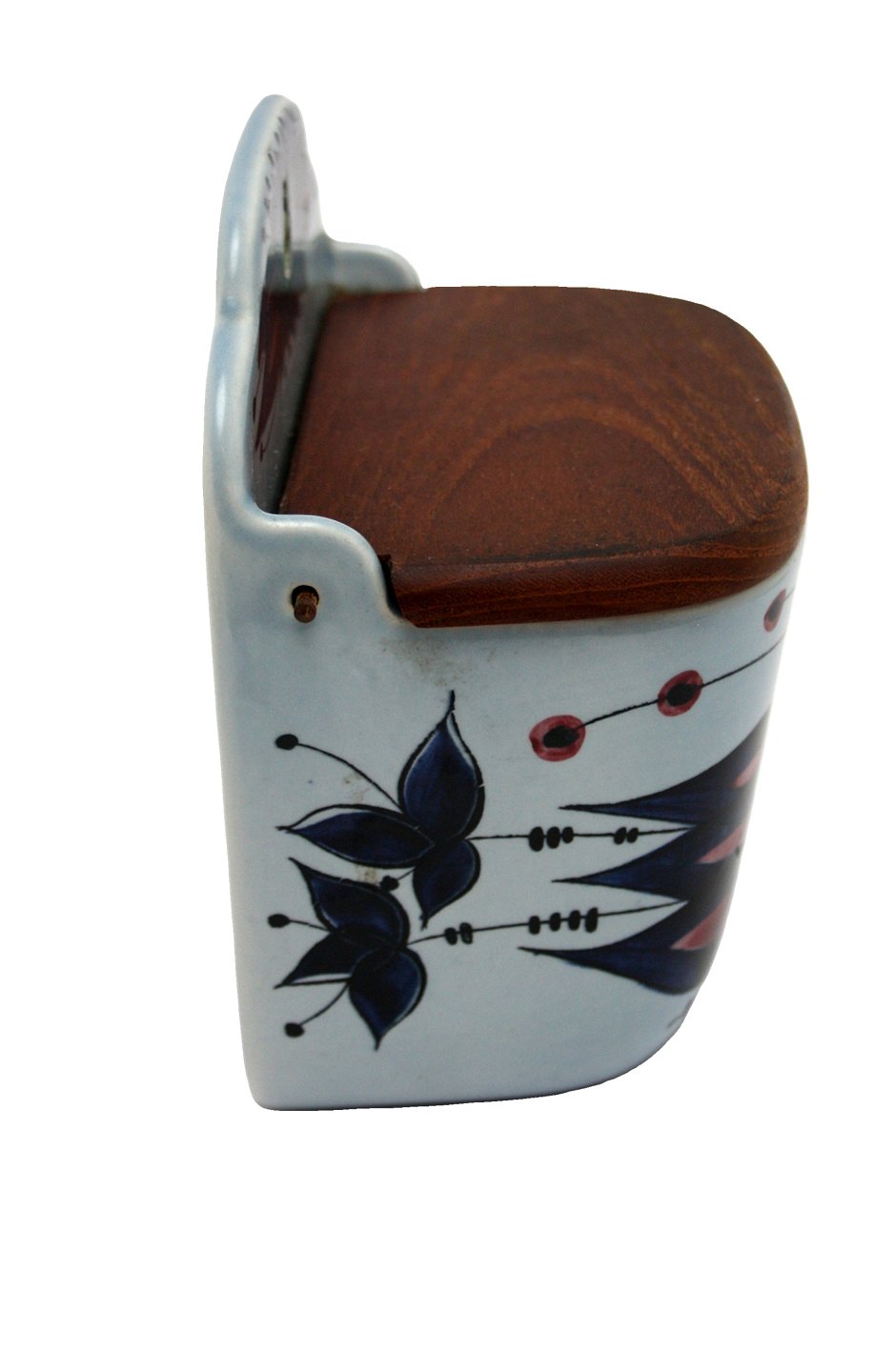 Aluminia, Fajance, Tenera, Saltkar med fugl og teaktrælåg. Designet af Beth Breyen. Nr. 132/261. Højde 16 cm. Længde 15 cm. Dybde 8,5 cm. II sortering. God stand. Pris: 425 kr.