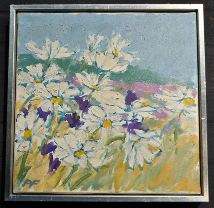 Flemming, Per (1940 - ) Denmark: Flowers. Oil on canvas. Signed. 30 x 30 cm.