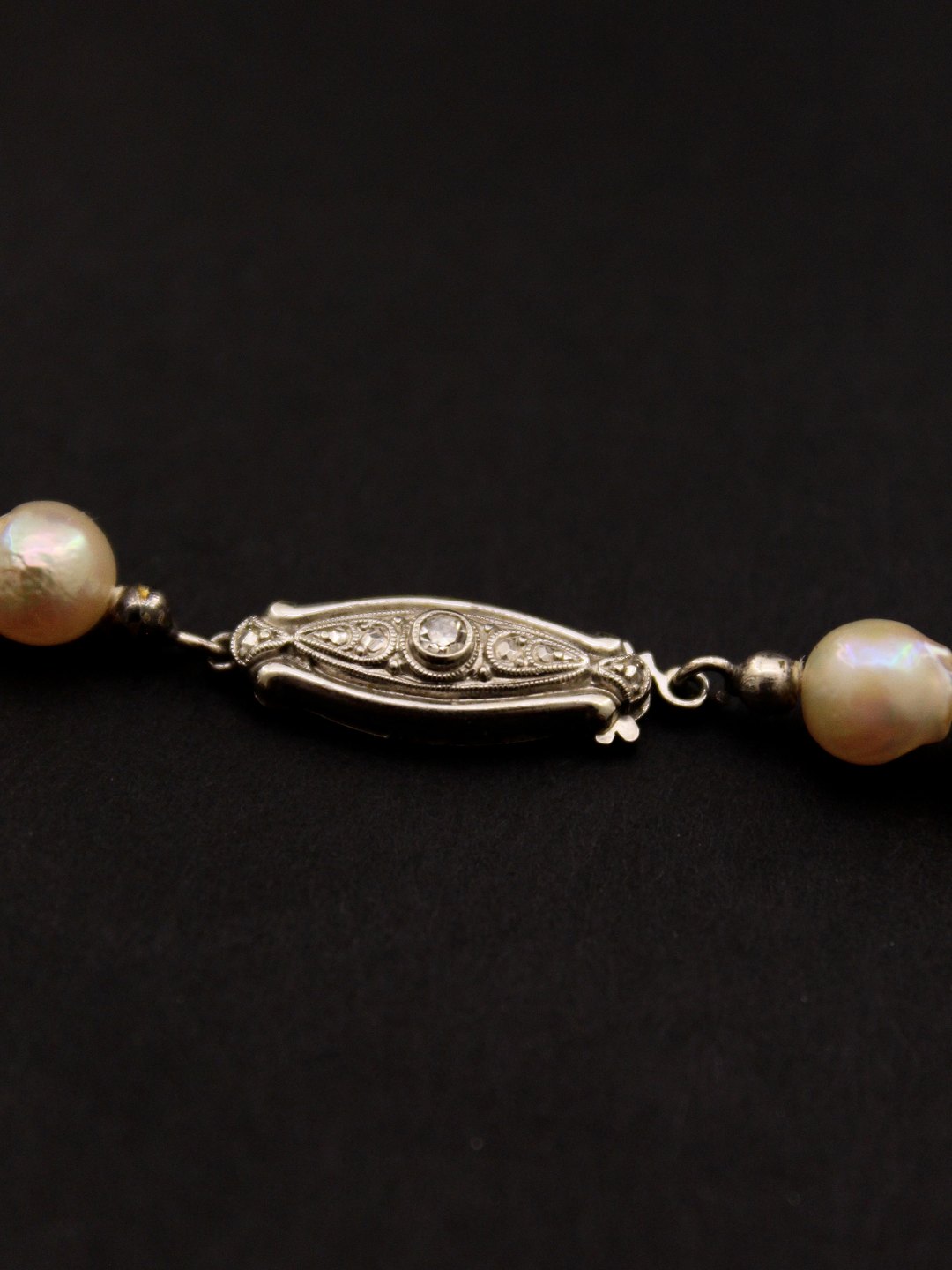 Halskæde med kulturperler og lås 14 karat guld med diamant L. 44 cm. emne nr. 607649