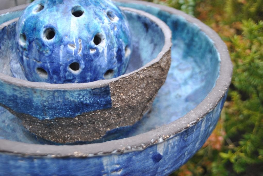 Schmidt, Louis Rosen (1943 - 1993) Denmark: Water fountain. Glazed bluish ceramic.