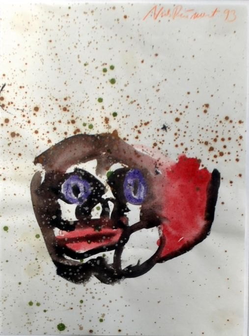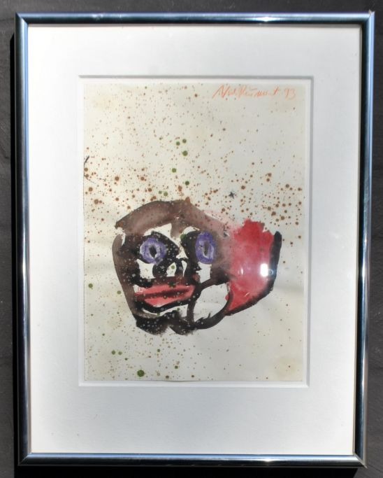 Reumert, Niels (1949 - ): Ansigt. Akvarel på papir. Signeret 1993. 30 x 22 cm.