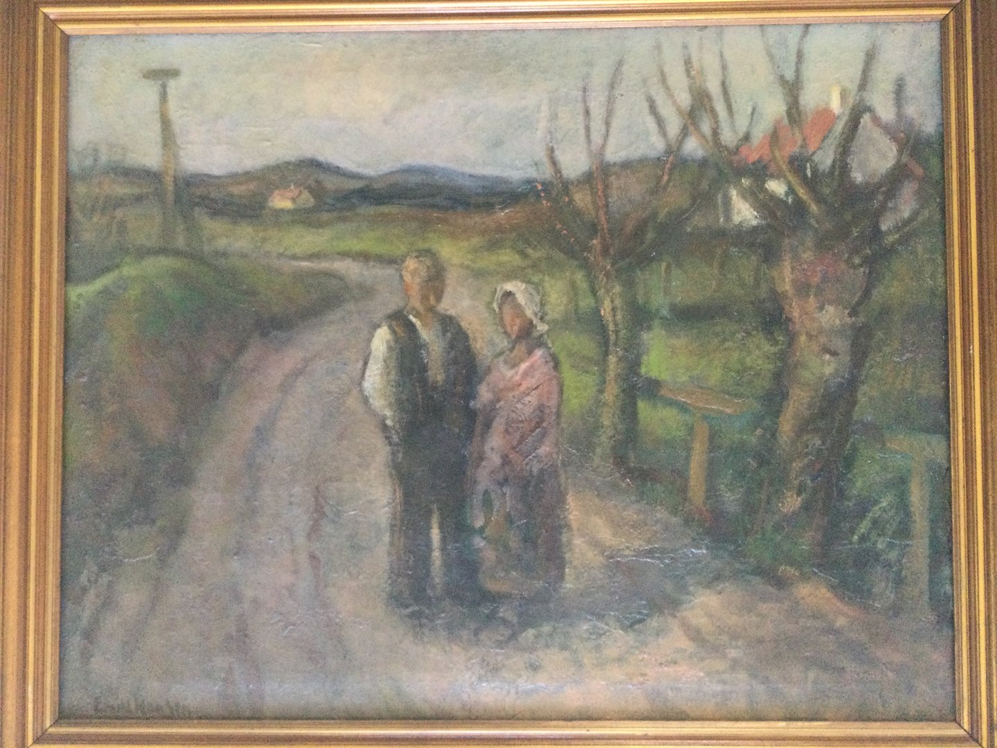 Maleri af Emiel Hansen - kvinde og mand på markvej.