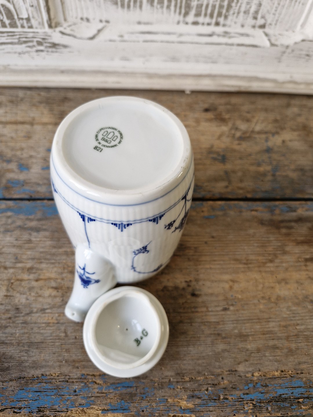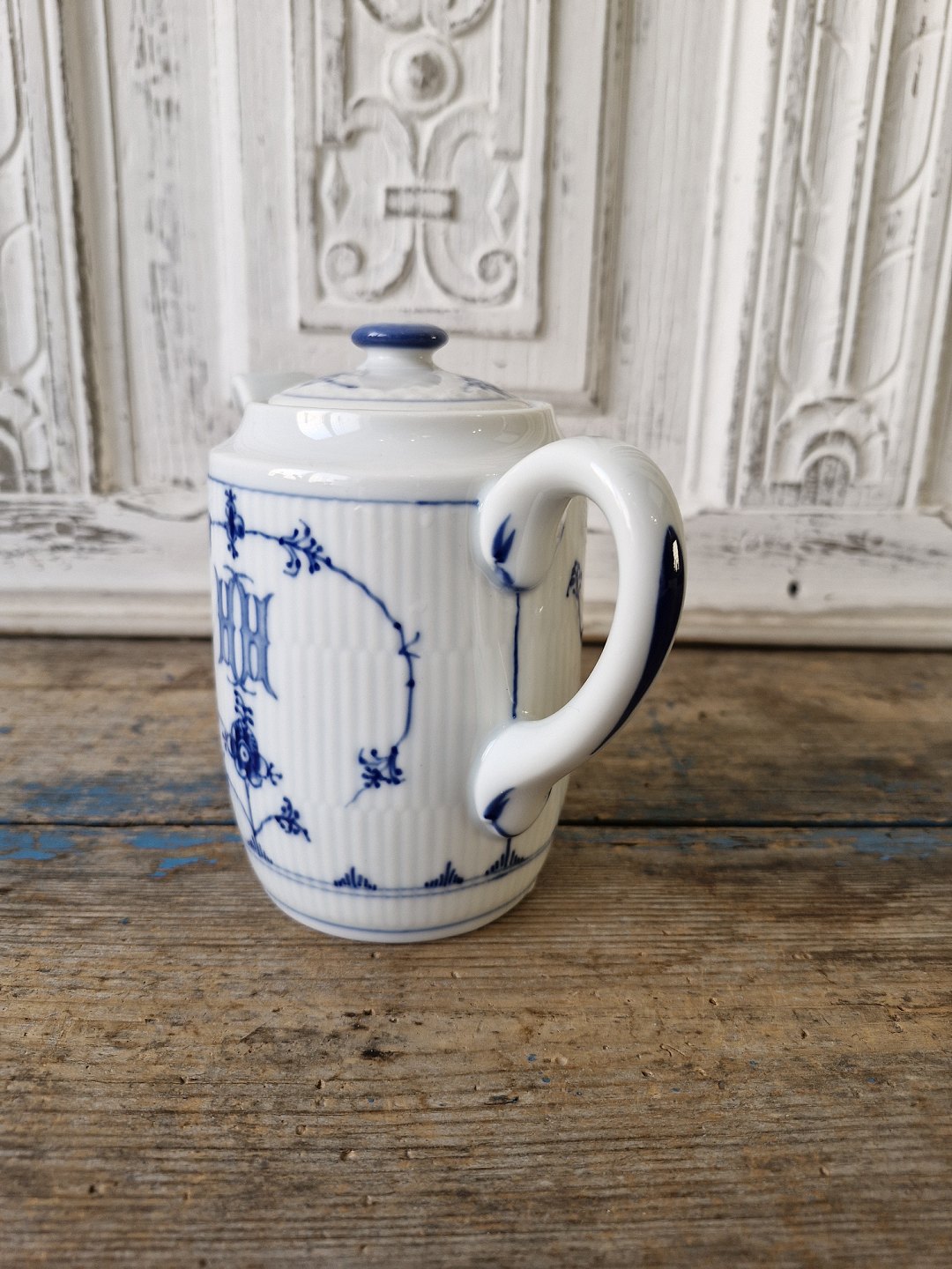 B&G Blåmalet Hotelporcelæn lille kaffekande med logo "HH" no. 821