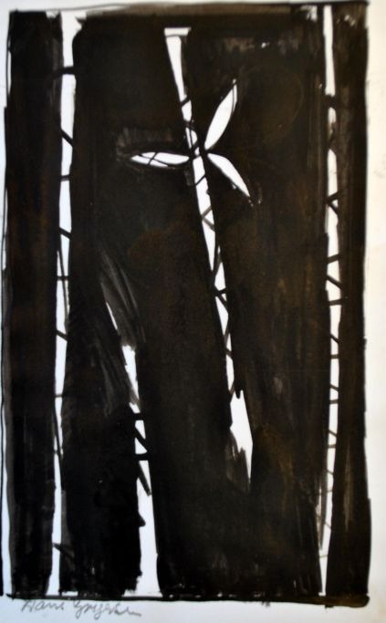 Gregersen, Hans (1951 - ) Danmark: Det underste land V. Tusch på pap. Signeret. 25,5 x 16 cm.