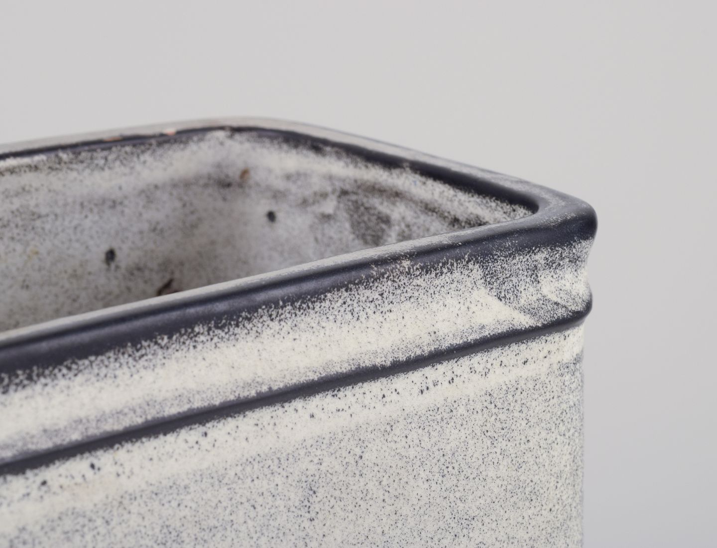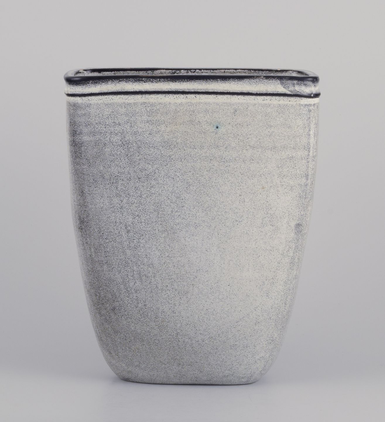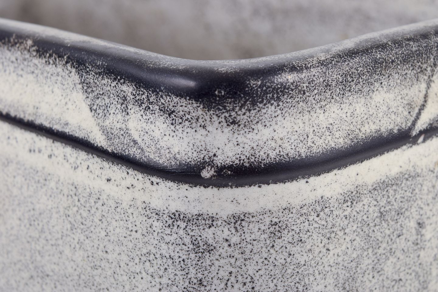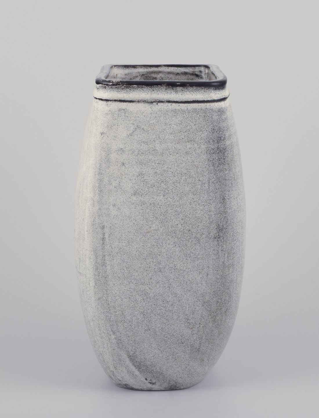 Stor firkantet keramikvase. Dobbelt sortgrå askeglasur.