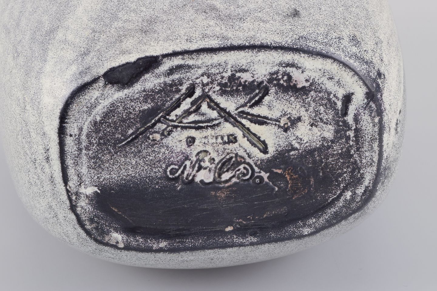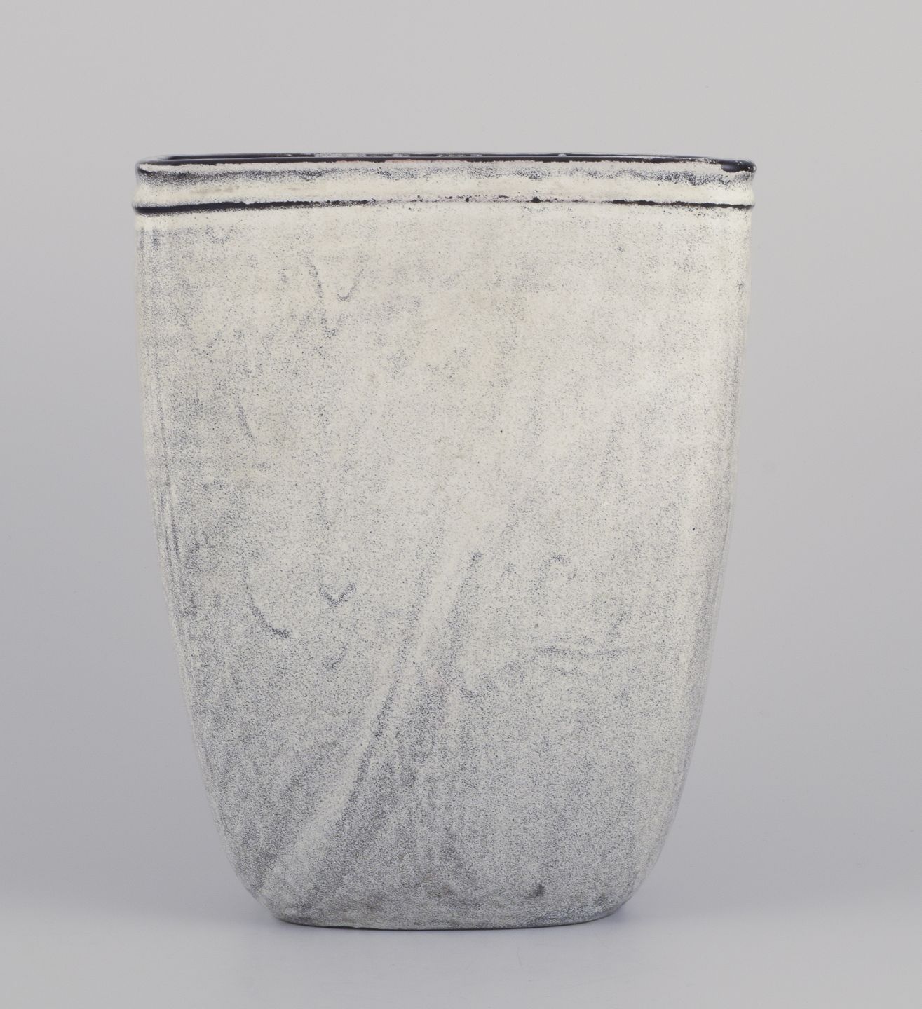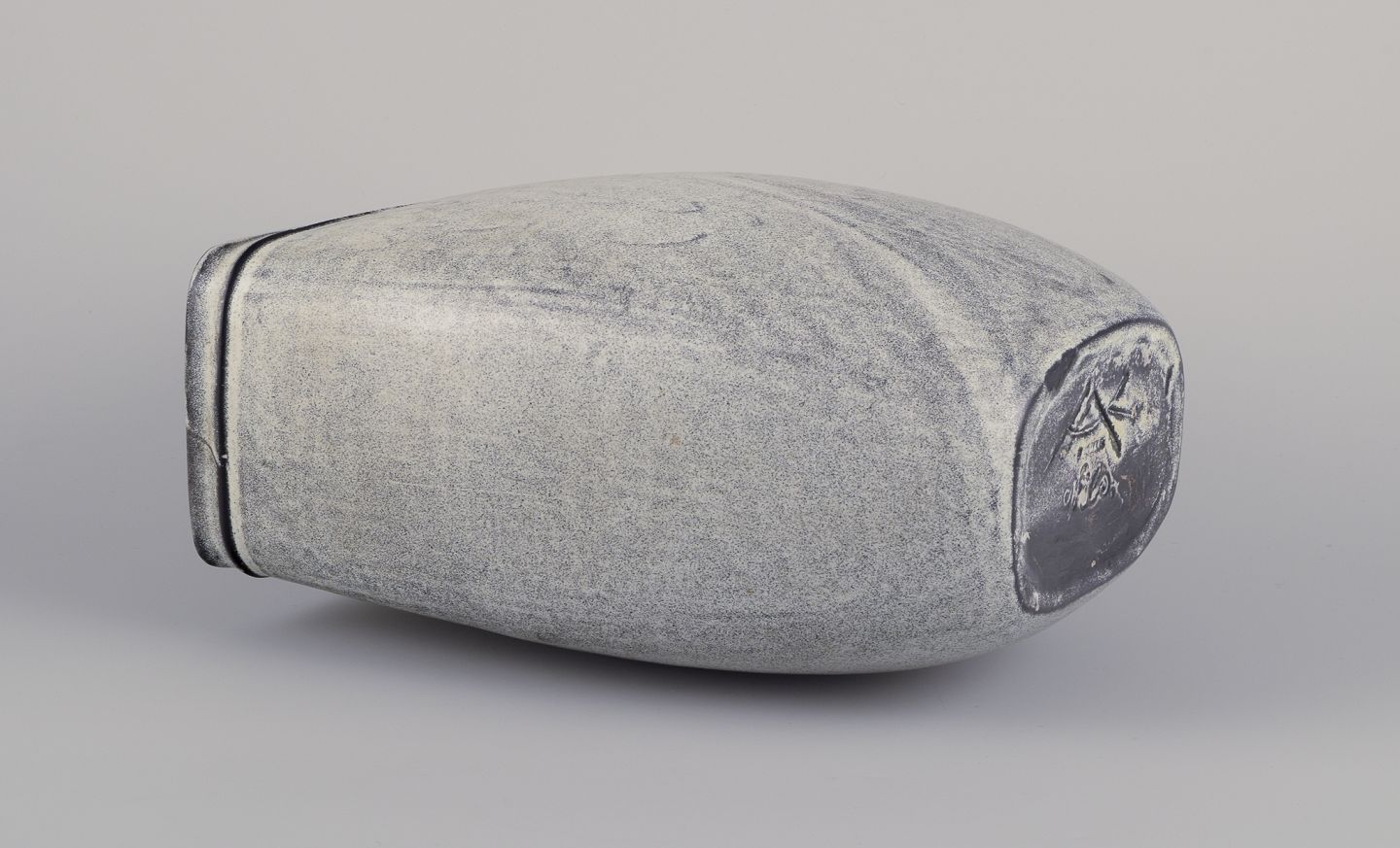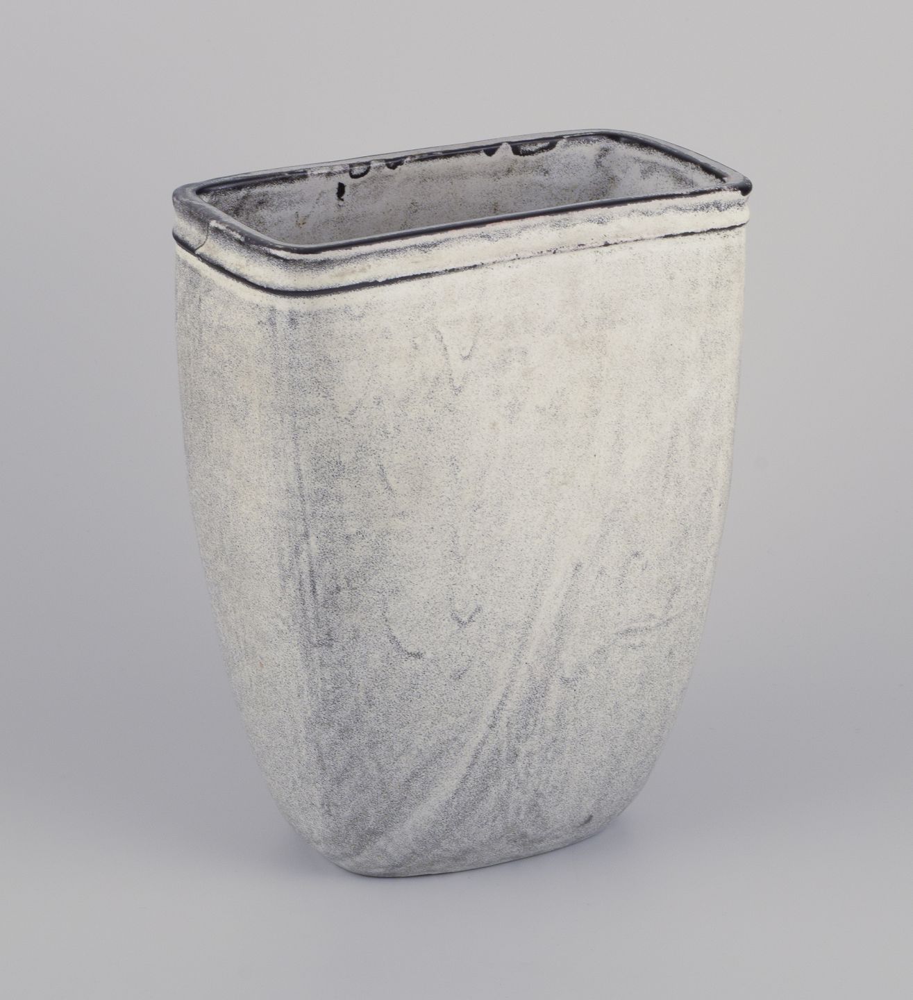 Stor firkantet keramikvase. Dobbelt sortgrå askeglasur.