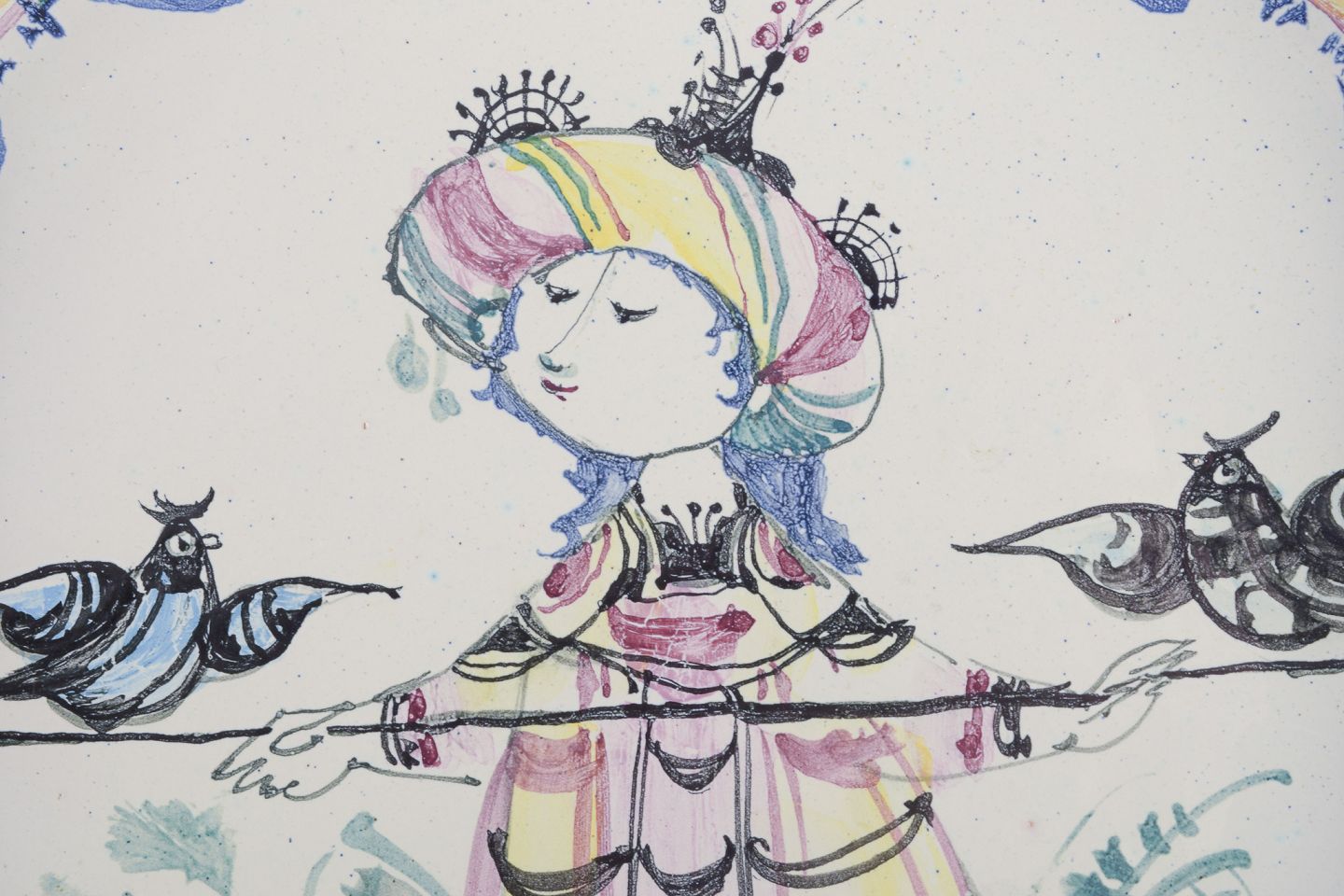 Motif of a woman with a turban and two birds.