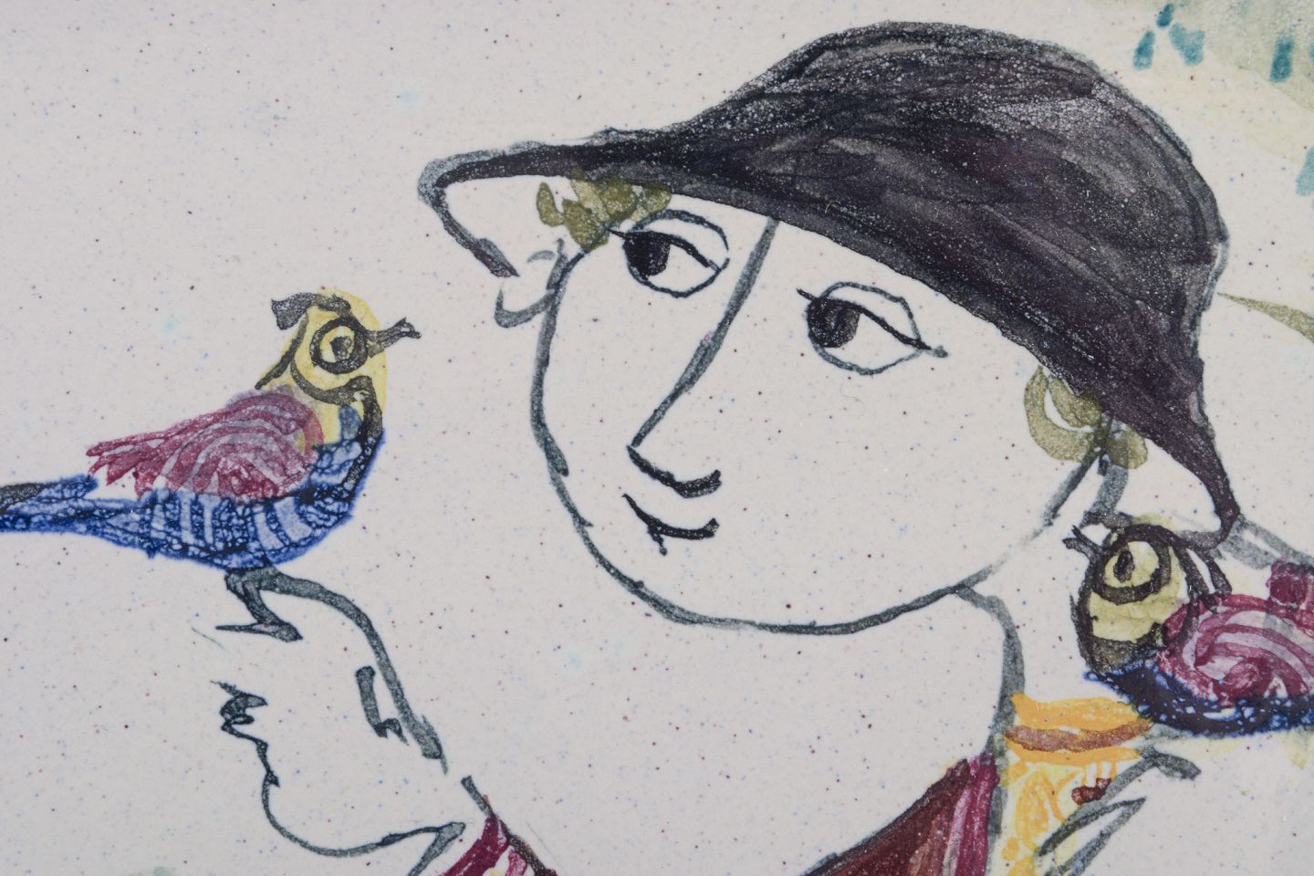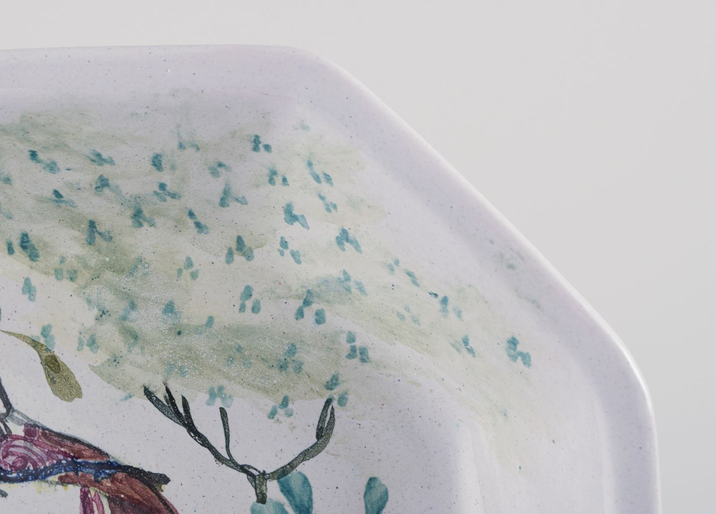 Dekoreret med polykrom glasur på lysegrå base.