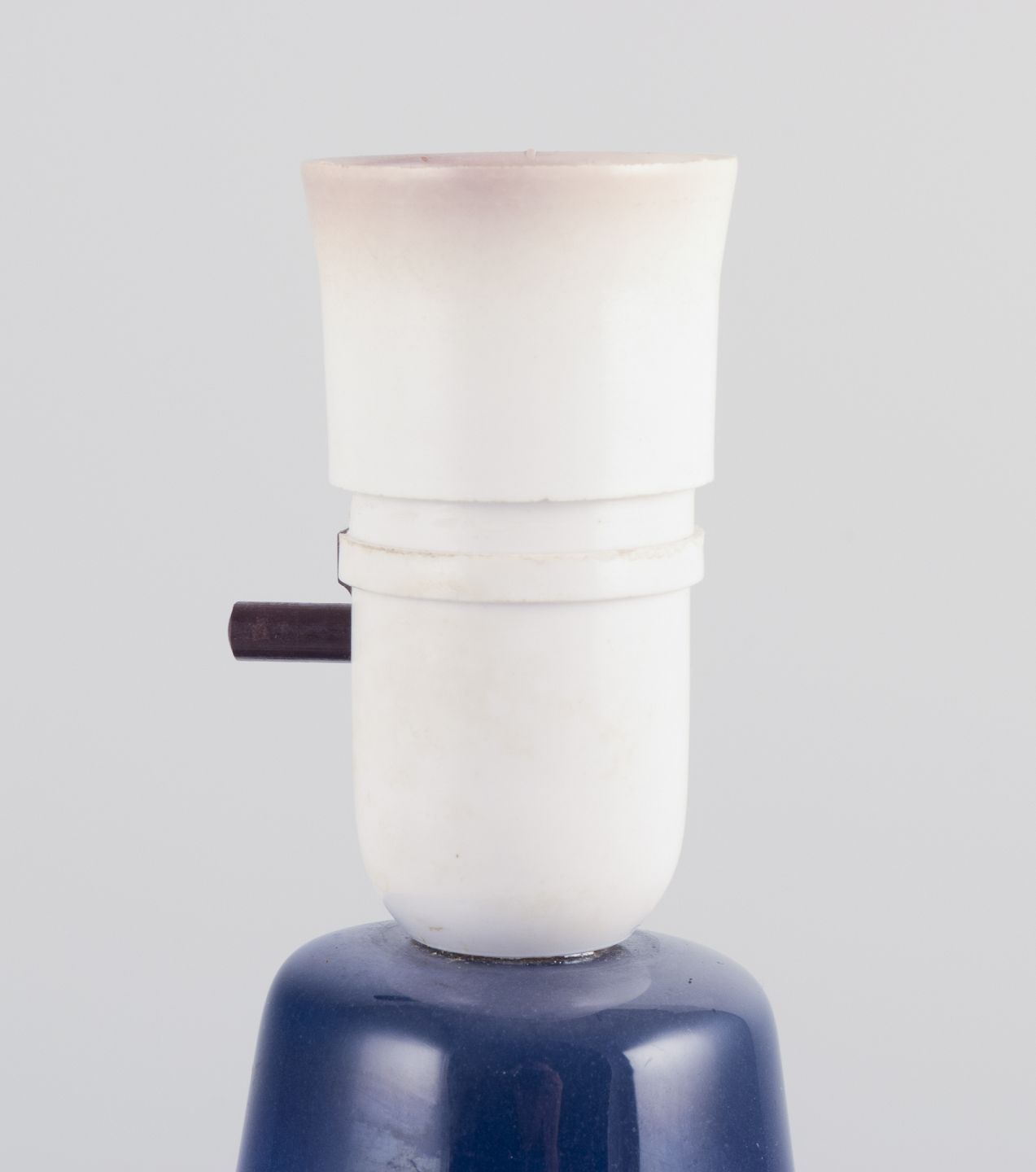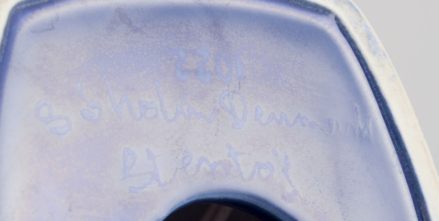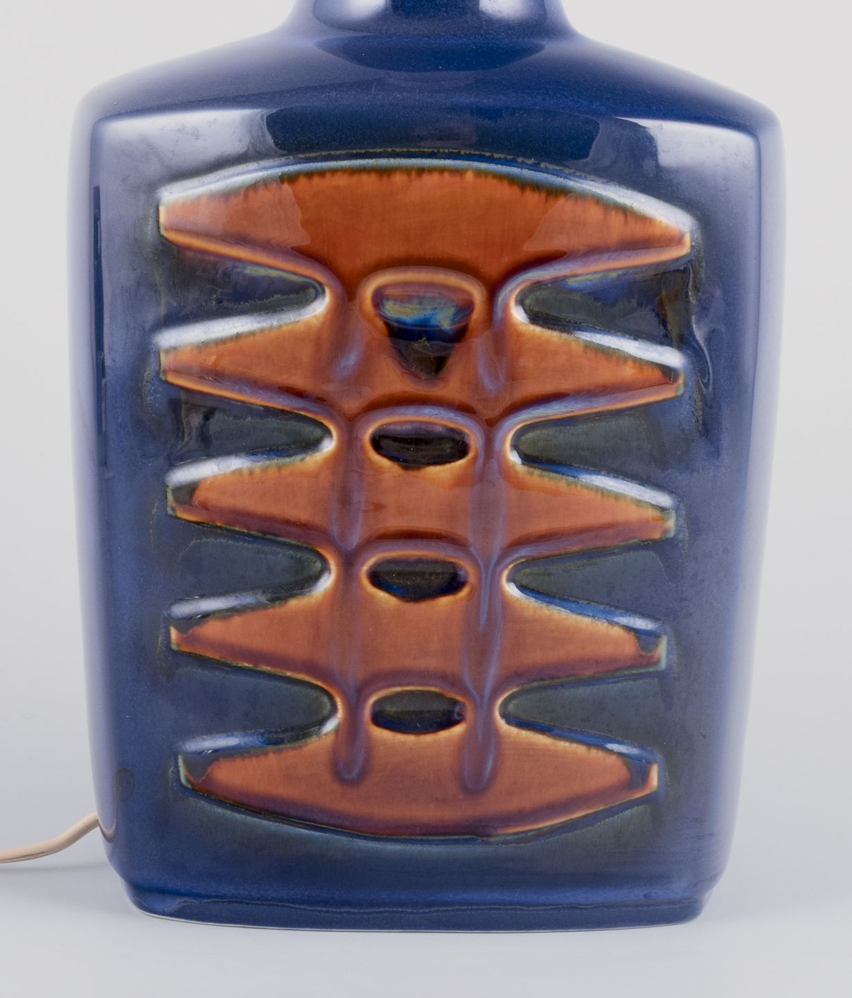Okkergul glasur på blå bund.