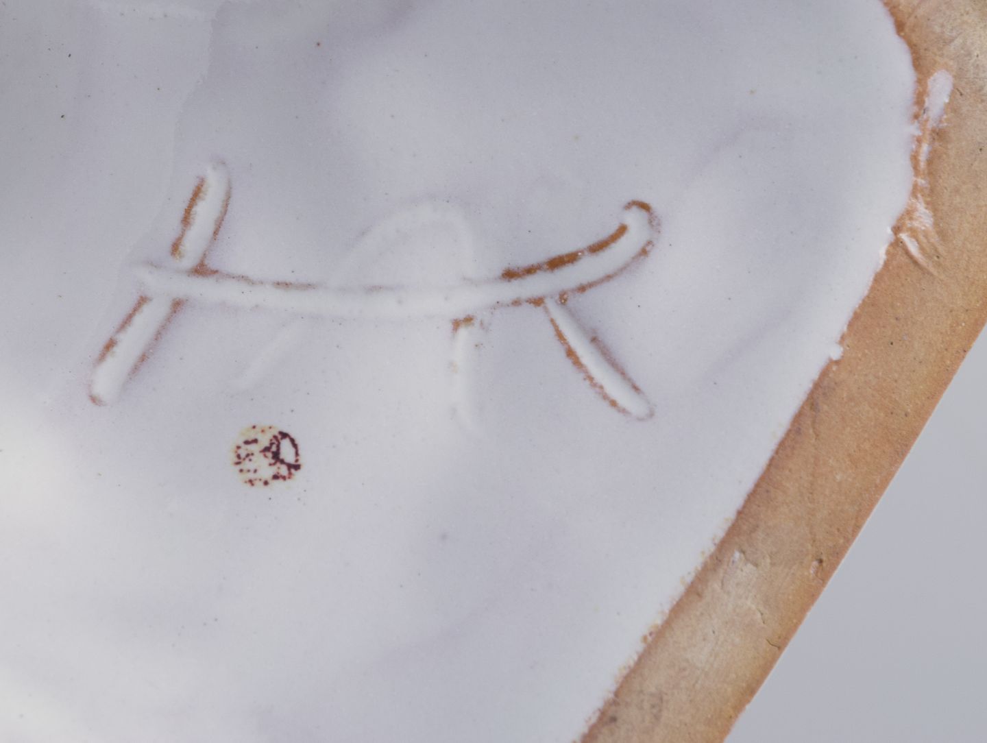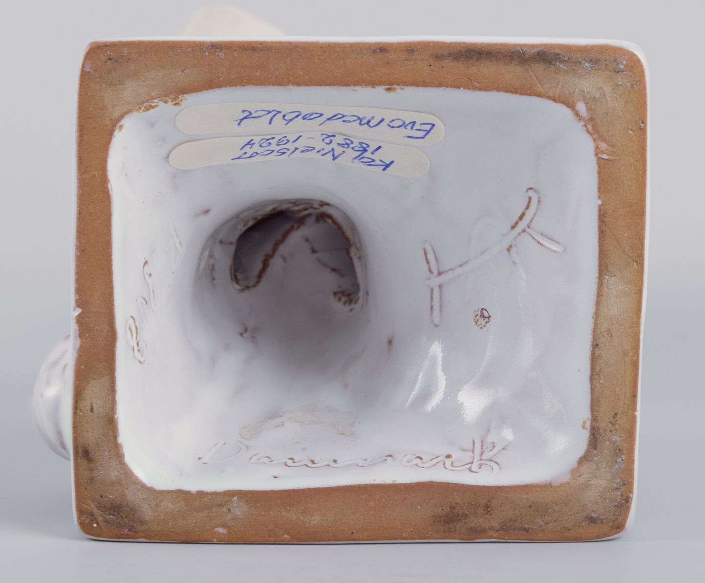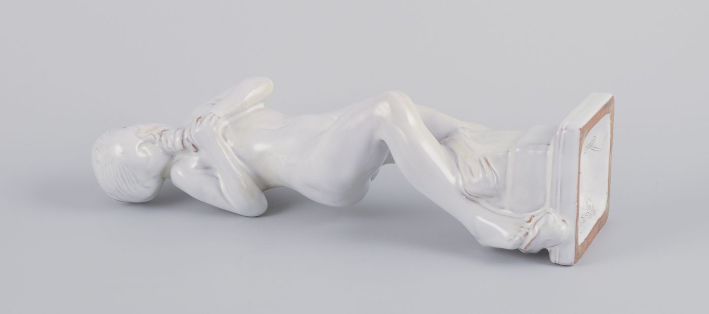 "Eva med æblet". Hvidglaseret figur af lertøj.