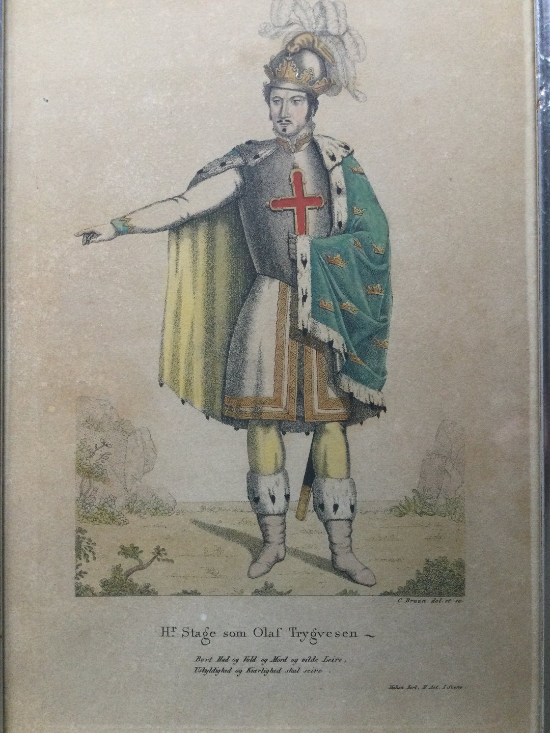 Skuespiller Johan Stage (1791-1834) som OLAF TRYGVESEN i Adam Oehlenschlägers HAKON JARL 2 akt - 1 scene.