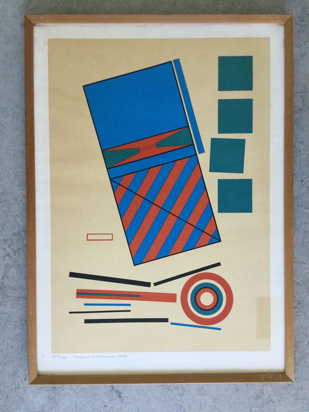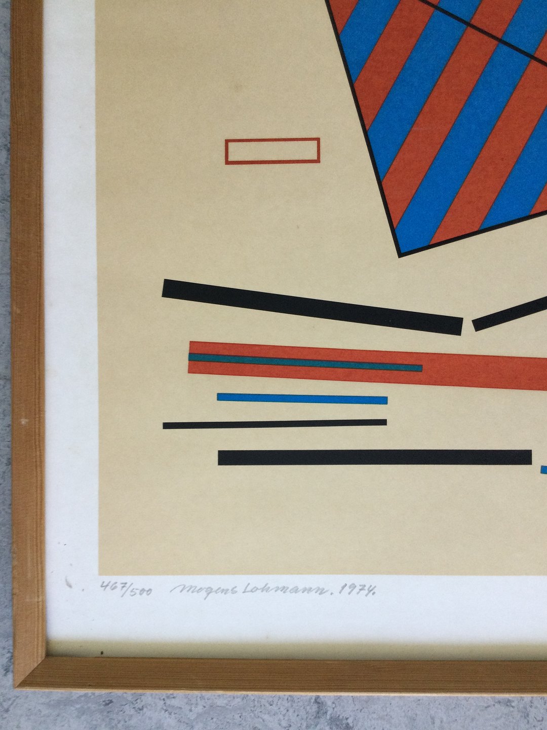 Farvelitografi af Mogens Lohmann - Kubistisk komposition 1974 .