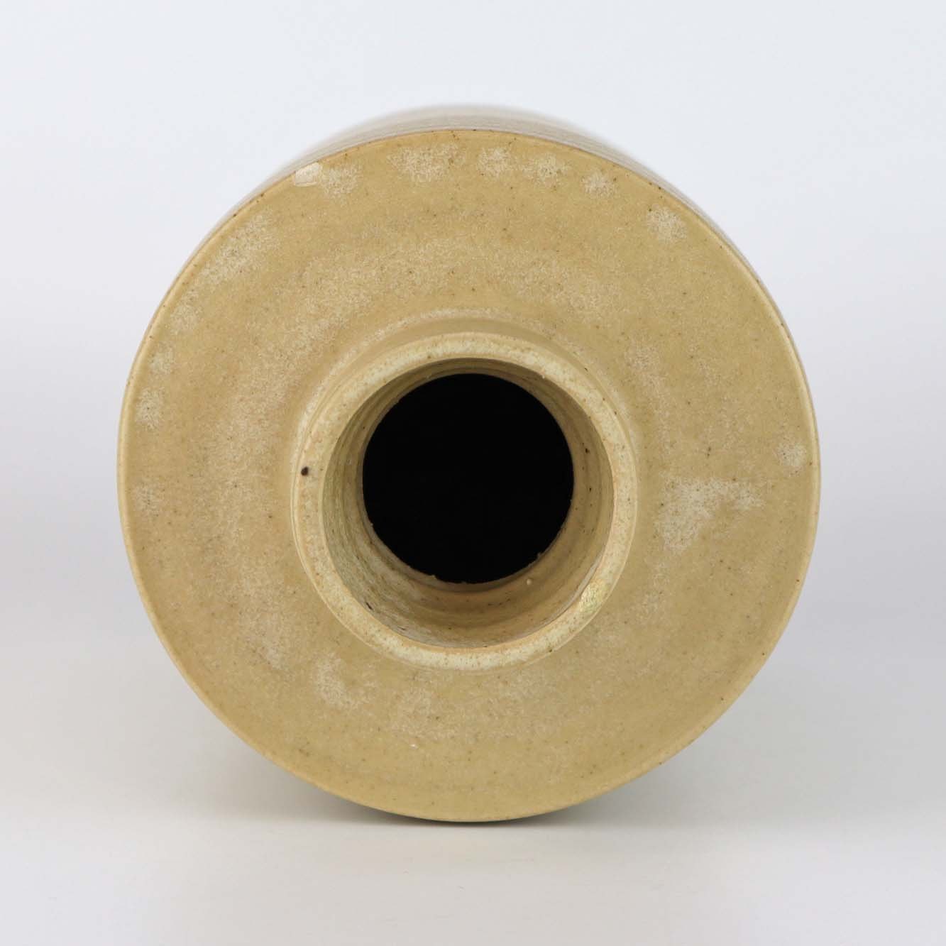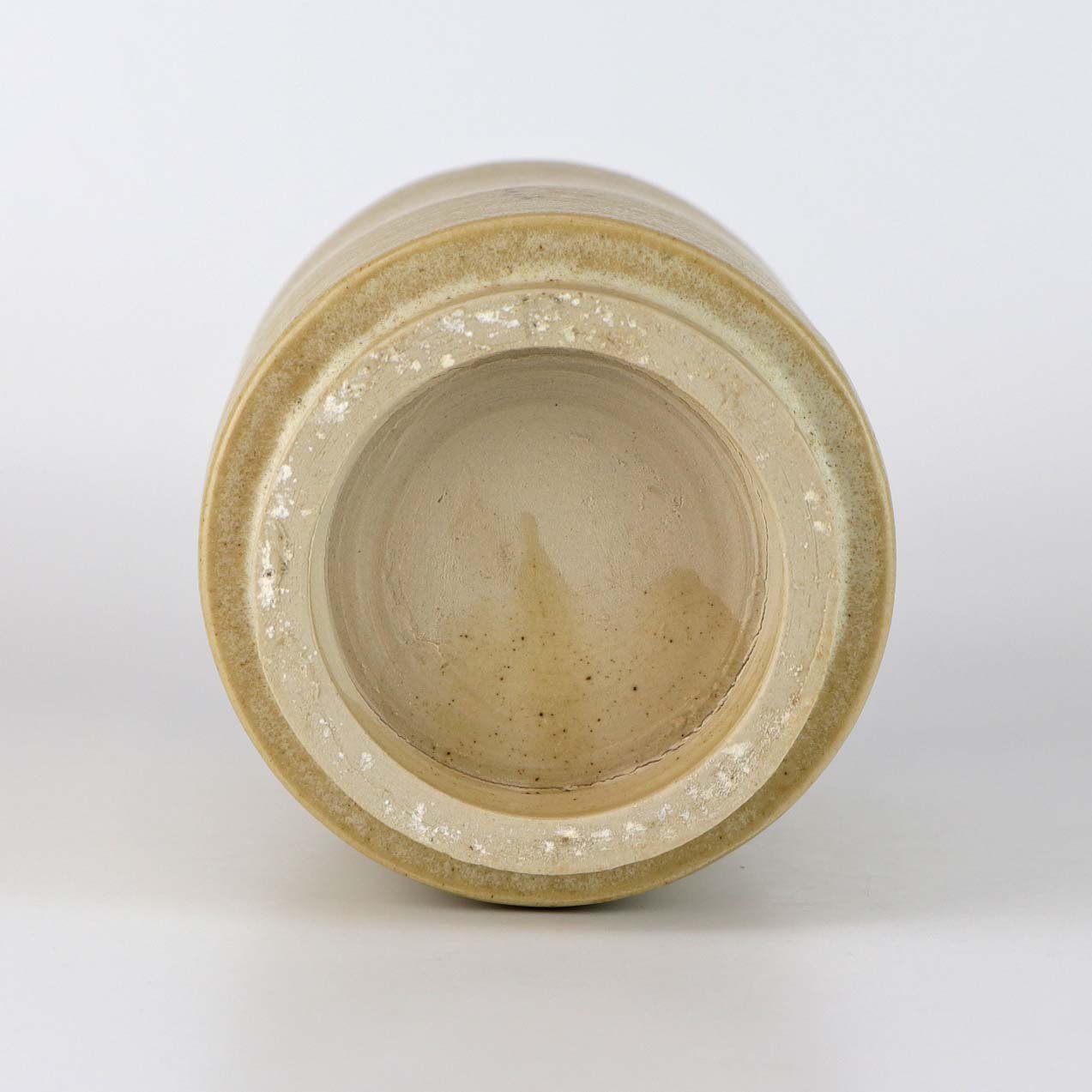Fremstår med mindre ujævnhed ved topkanten samt nøk i glasuren og brænderevne ved den påsatte bund.