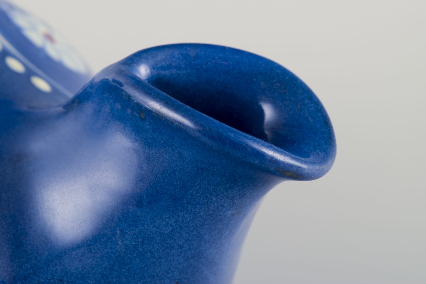 Stor ”Marguerite” tekande med blå glasur, dekoreret med hvide blomster.