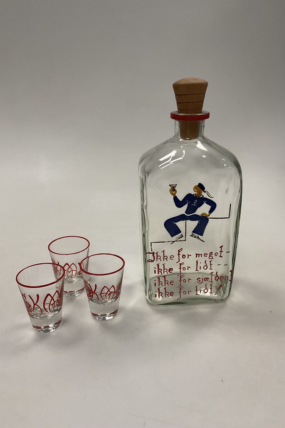 Holmegaard Jacob Bang Kantineflaske med 3 glas Sømand