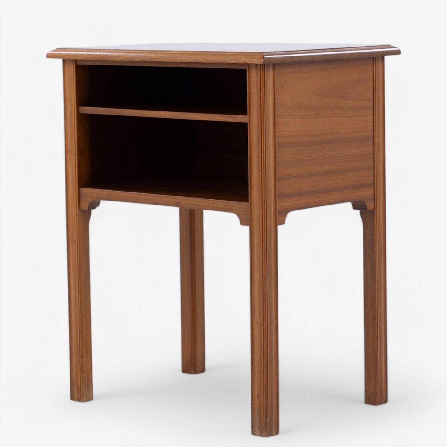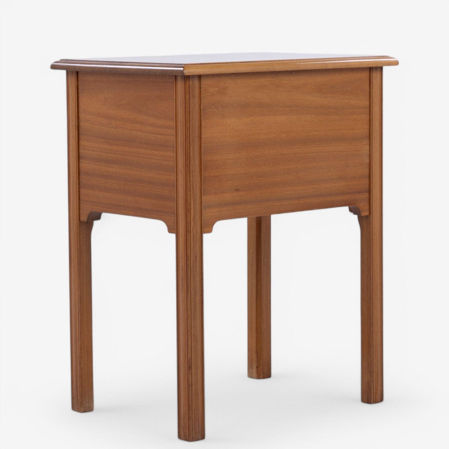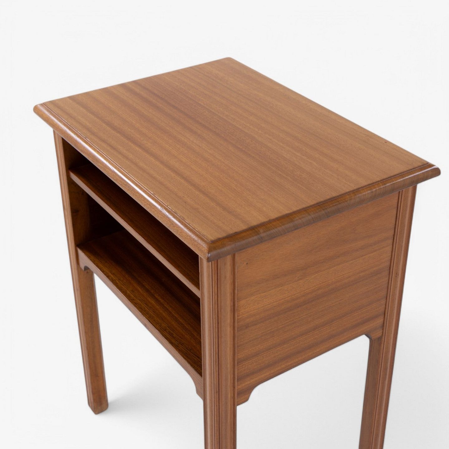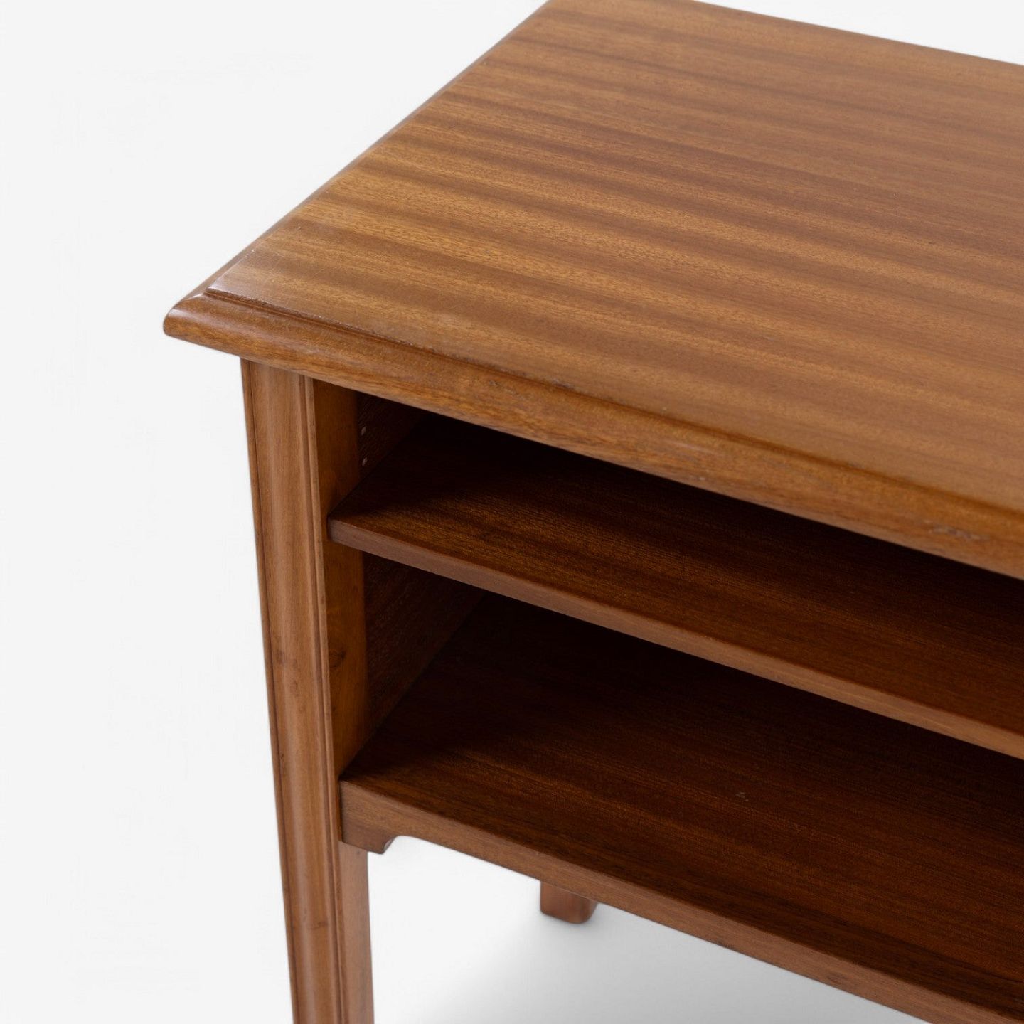 Sidebord i lakeret mahogni med underliggende hylde. Mærke fra producent.