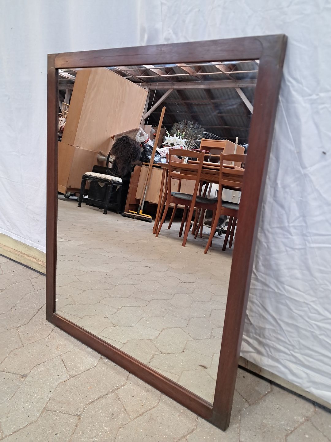 Spejl i massivt mahogni, fra 1980erne.
