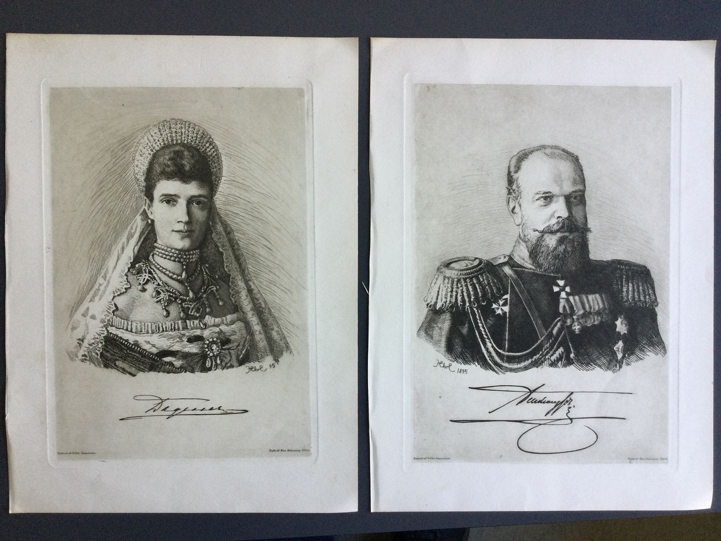 Portrætter af DM Kejserinde Dagmar (1847-1928) og Kejser Aleksandr III af Rusland (1845-94).