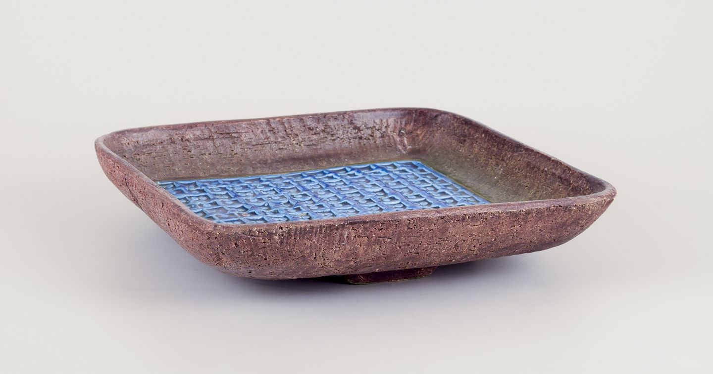 Square bowl on feet, glazed ceramic.