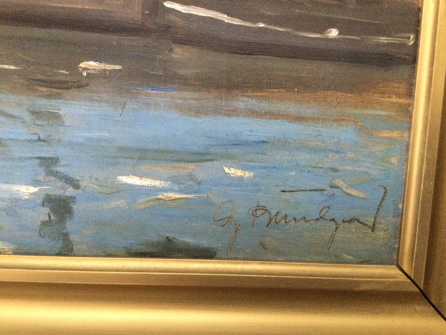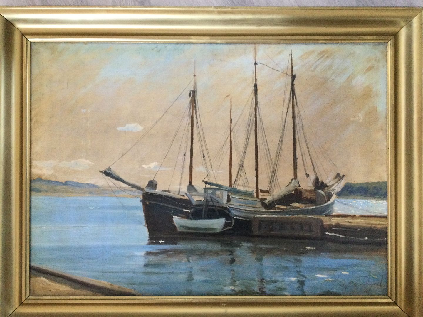 Maleri af Gunner Bundgaard - Parti fra Havnen i Hadsund.