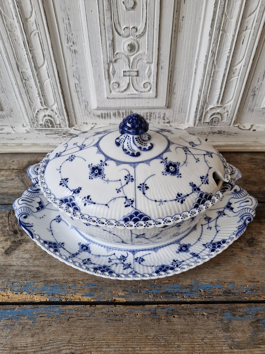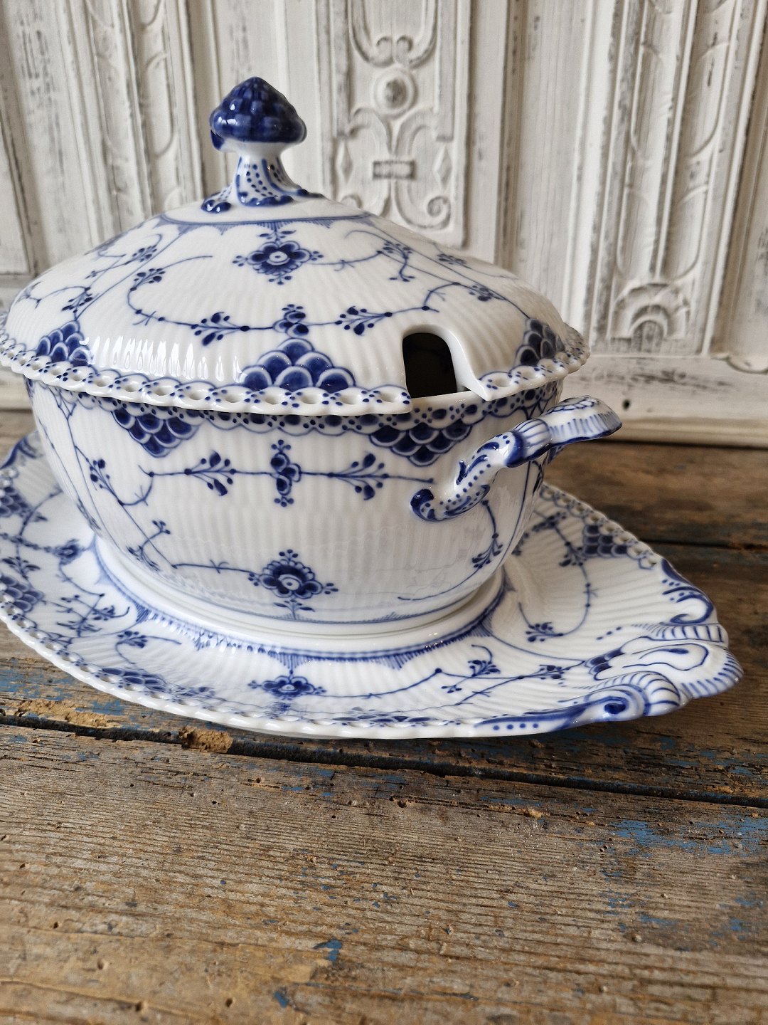 Royal Copenhagen Musselmalet helblonde terrin på underfad
