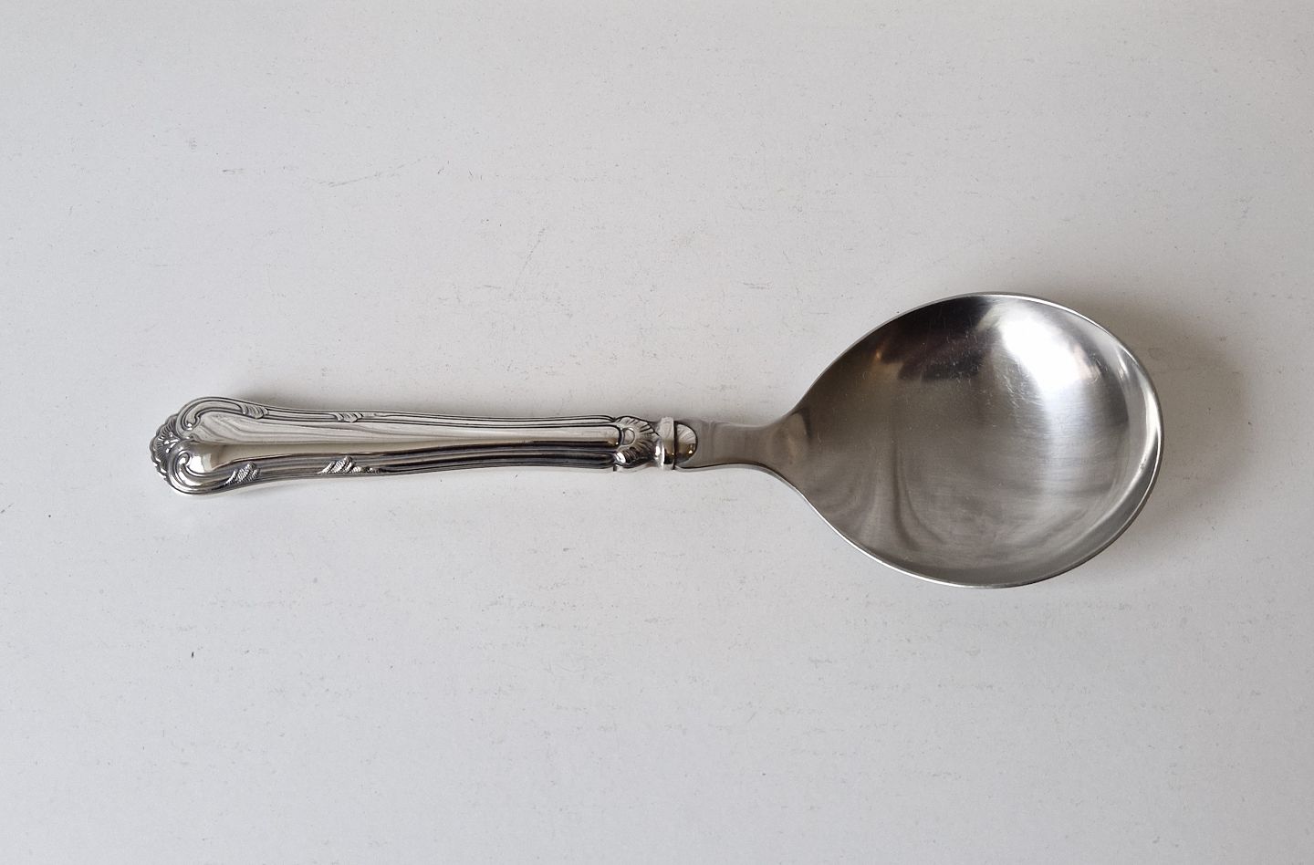 Herregård stor serveringsske i sølv og stål