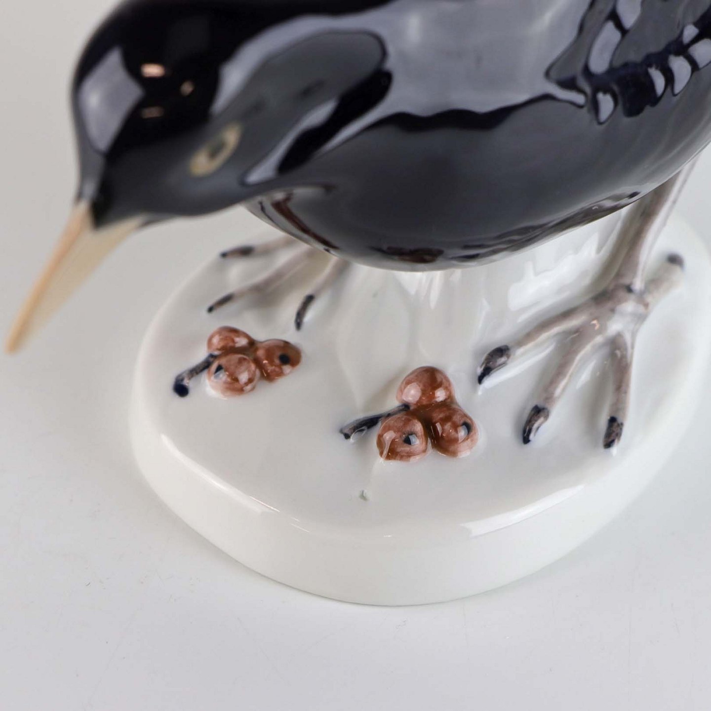 Figur i porcelæn med motiv af stående solsort med røde bær liggende ved fødderne. Nr. 2405
