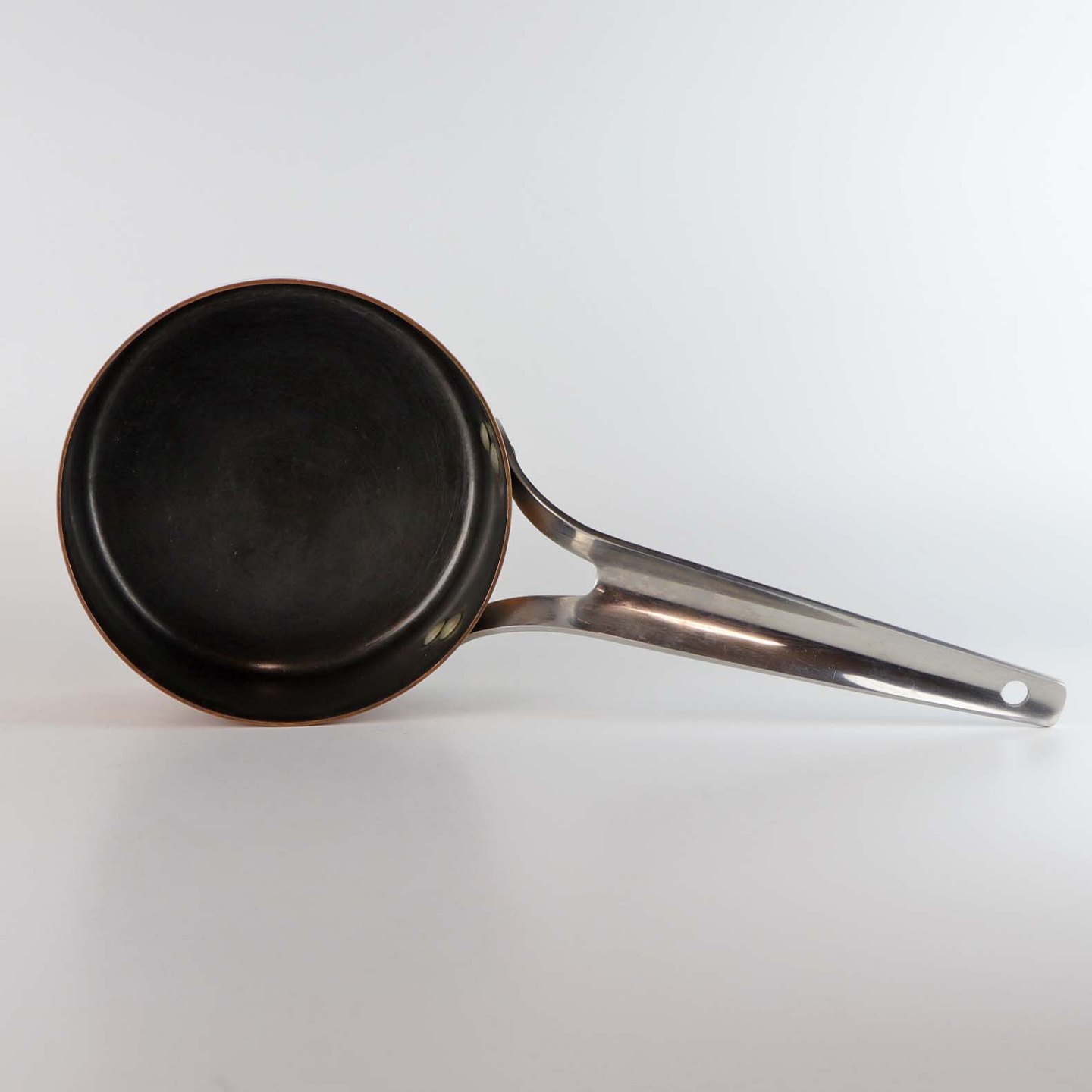 Mellemstor kasserolle i kobber med hank i stål. Fra serien Taverna