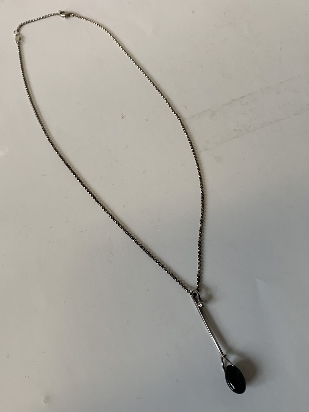 Georg Jensen sterlingsølv Dew Drop halskæde med vedhæng med sort agat.