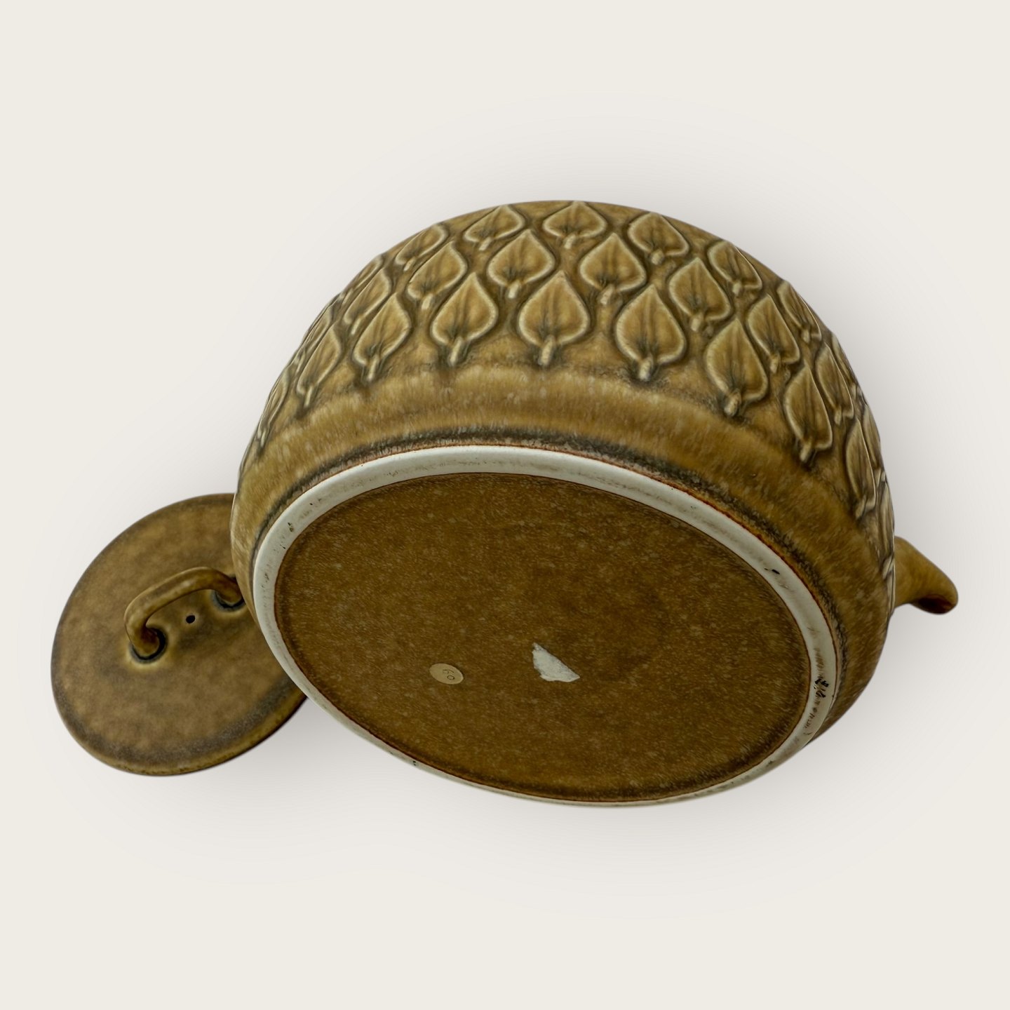 Bing & Grøndahl, Relief, Lav tekande, 21cm i diameter, 18cm høj (incl. hank) Design Jens Harald Quistgaard *Pæn stand* Stentøjsstellet er produceret hos B&G, Nissen & Kronjyden.