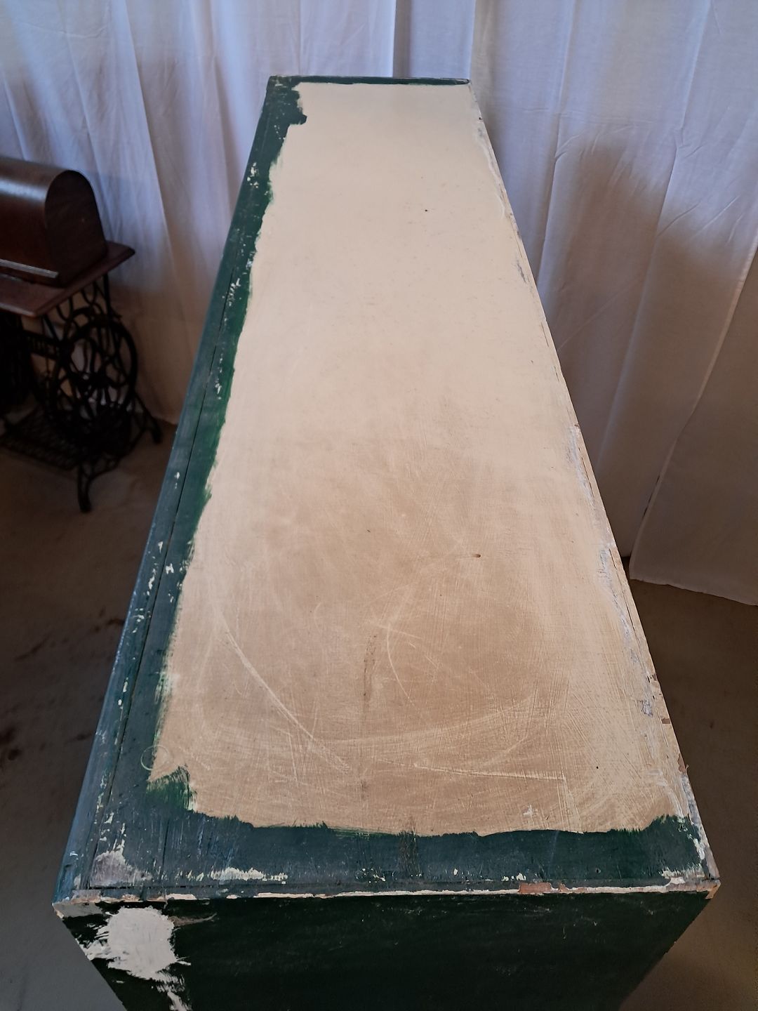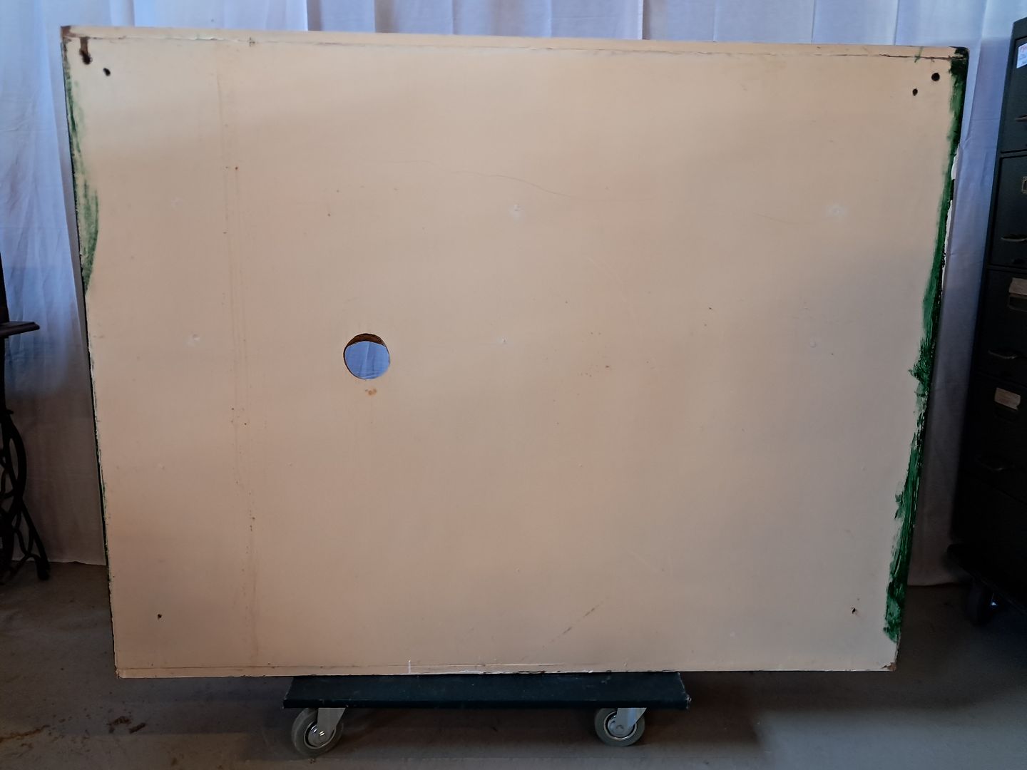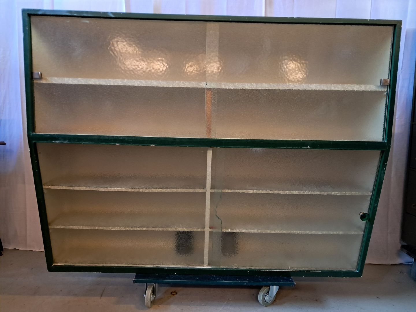 Malet køkkenskab med frostet glaslåger, fra 1950erne.