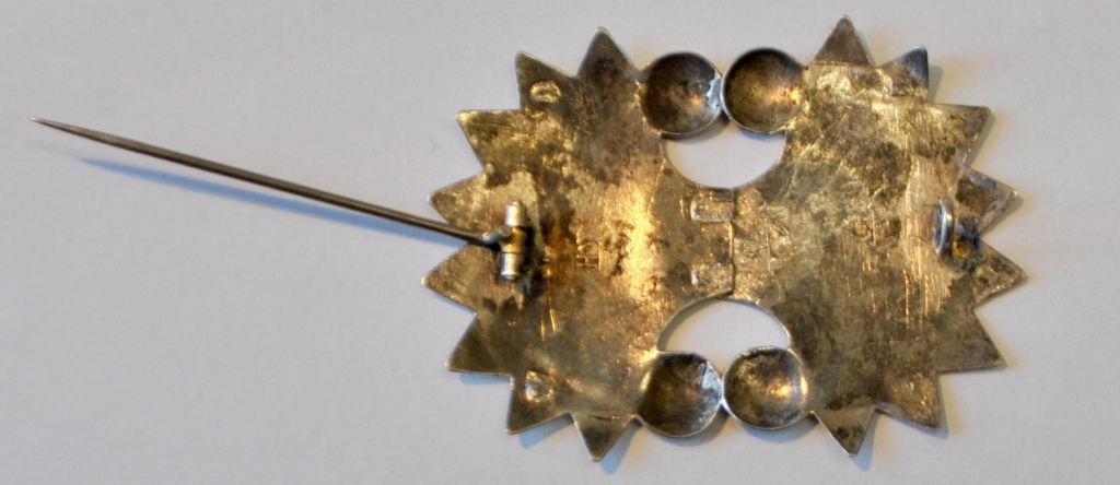 Sølvbrosche - tidligere kåbespænde, Niels Peder Høvring, 19. årh. Hobro. Stemplet. L.: 5,3 cm. B.: 4,2 cm.