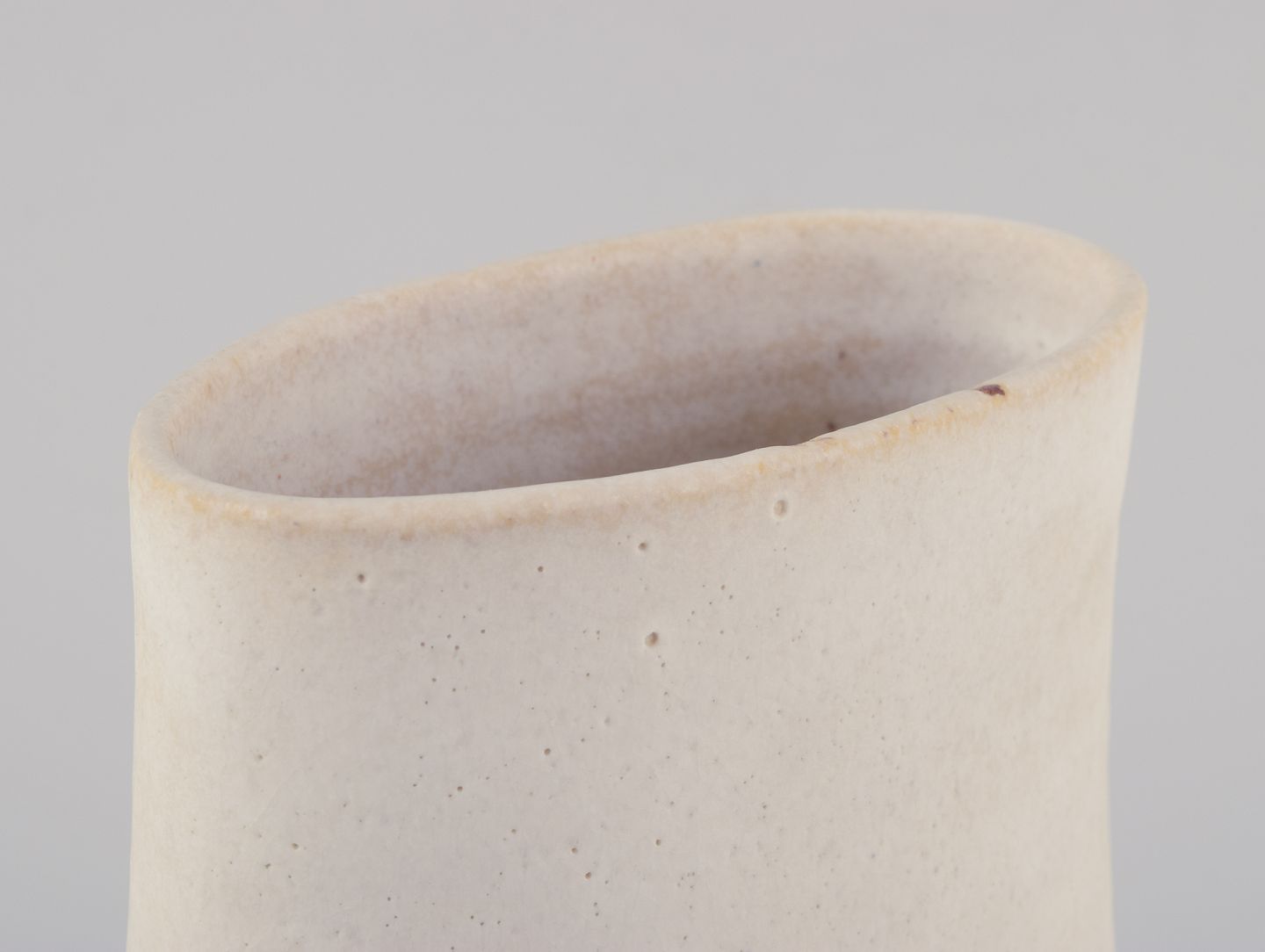 Stor modernistisk unika vase i glaseret stentøj. Smuk glasur i sandfarvede nuancer.