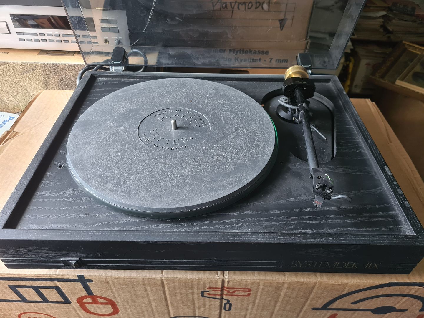 Vintage pladespiller fra SYSTEMDEK model IIX. Spiller helt fint. Kommer med en Scorpio tonearm og Goldring Elektro II pick-up. Cover har lidt brugsspor der ligner flænger, men ikke er det.