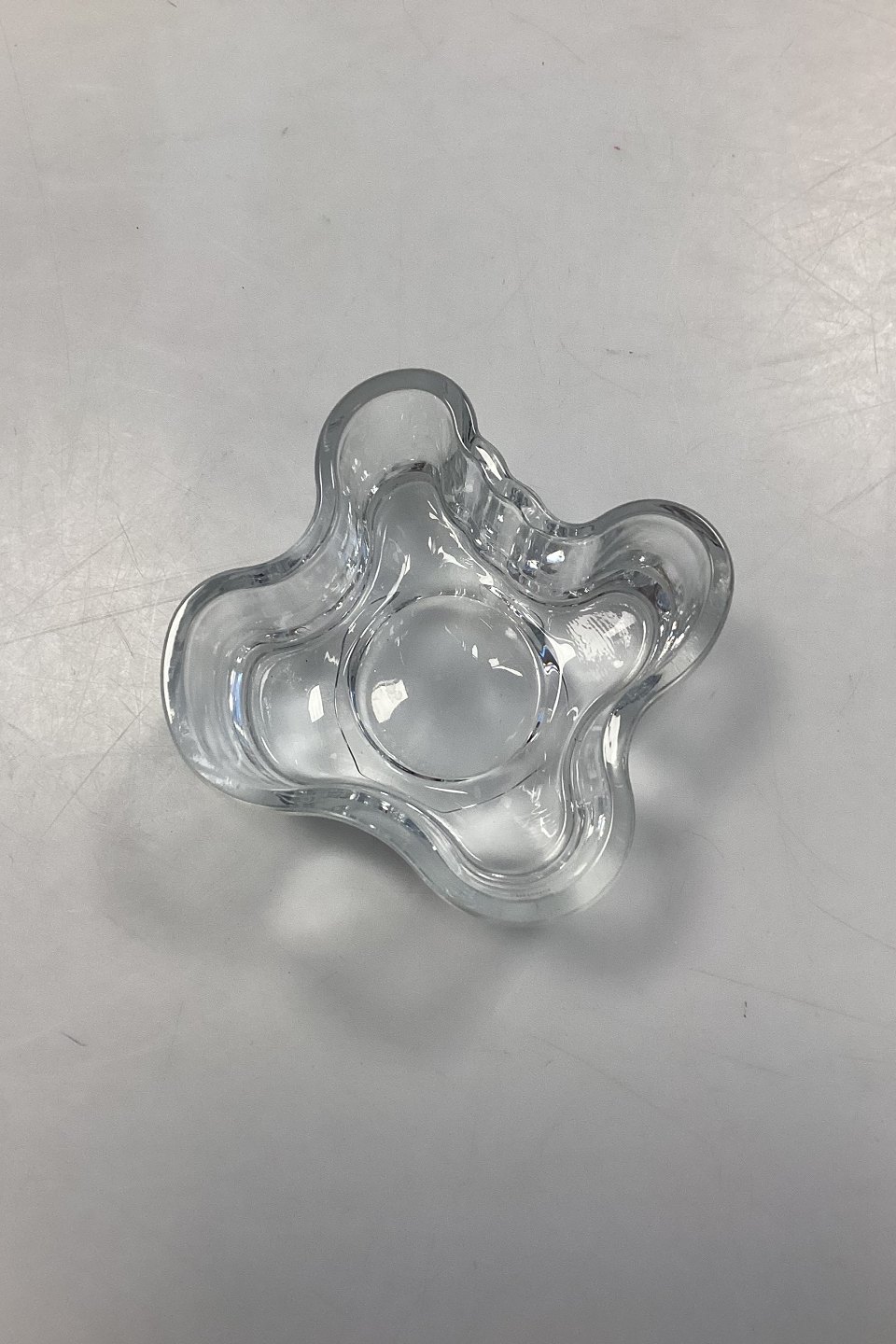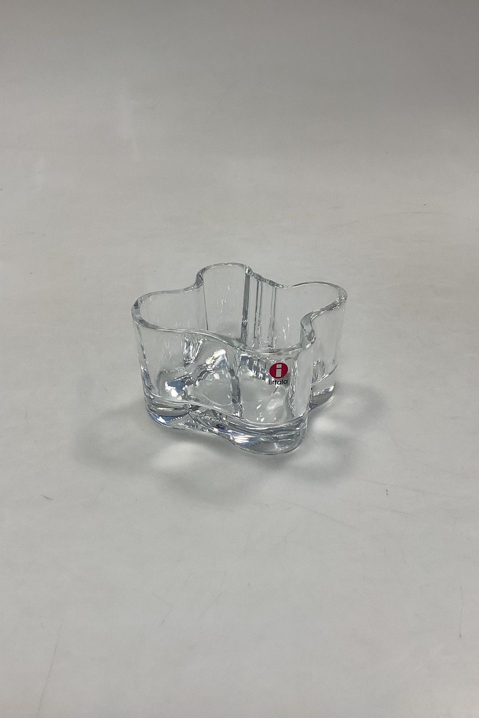 Iittala Fyrfadslysestage i klart glas. Designet af Alvar Aalto.