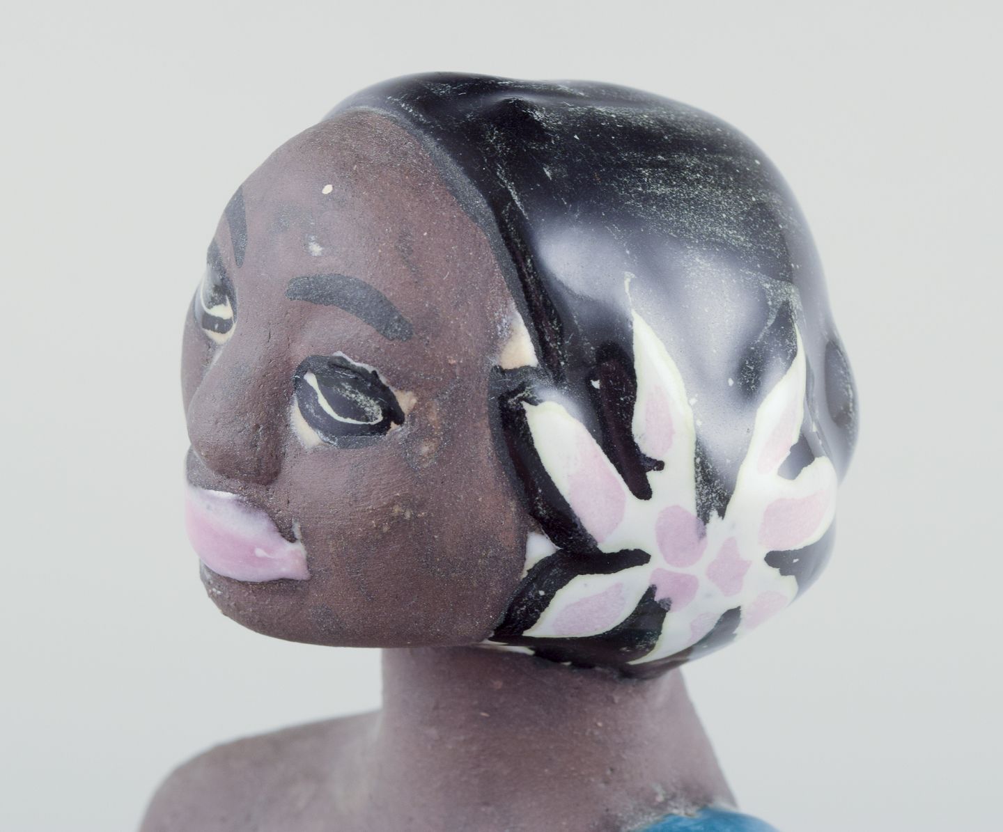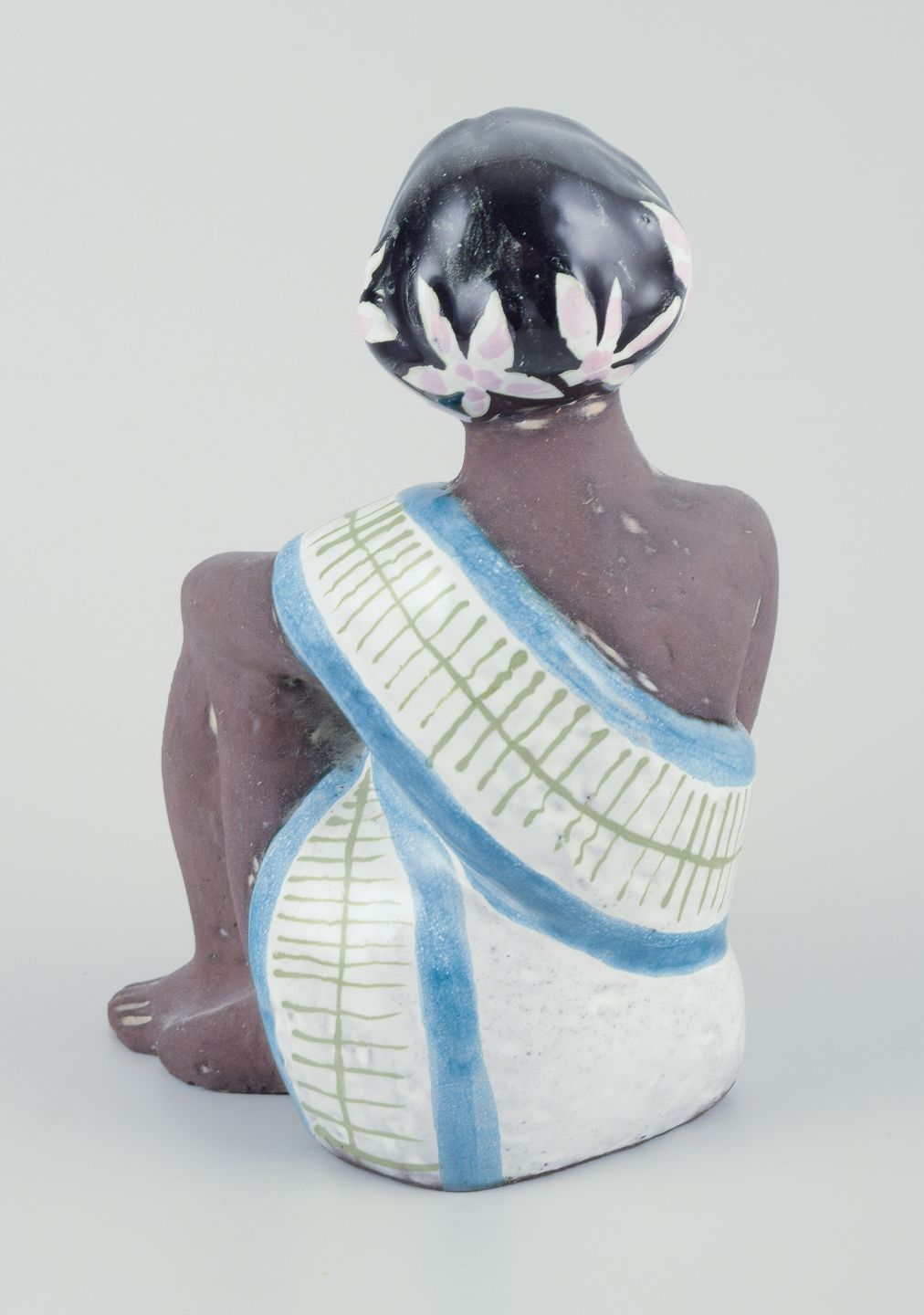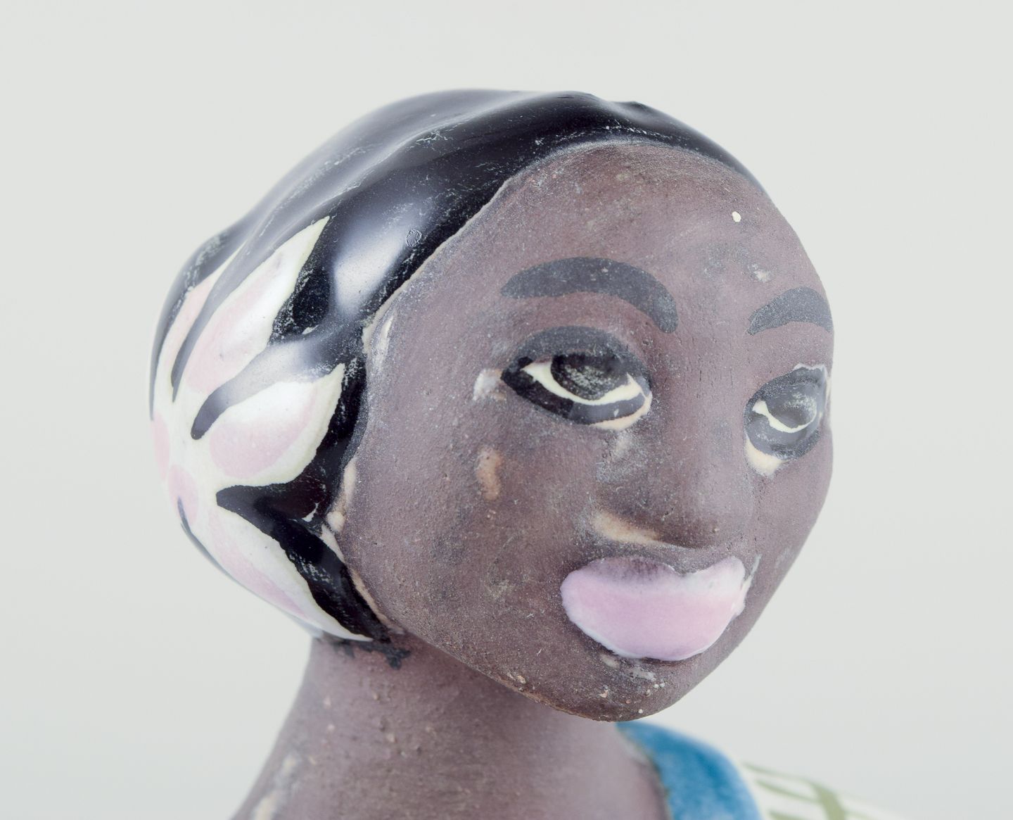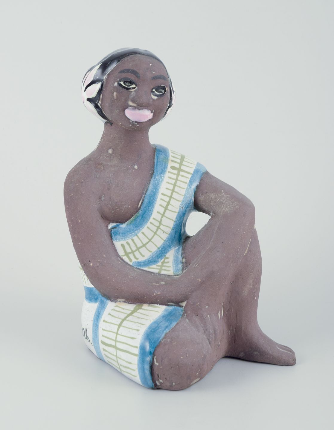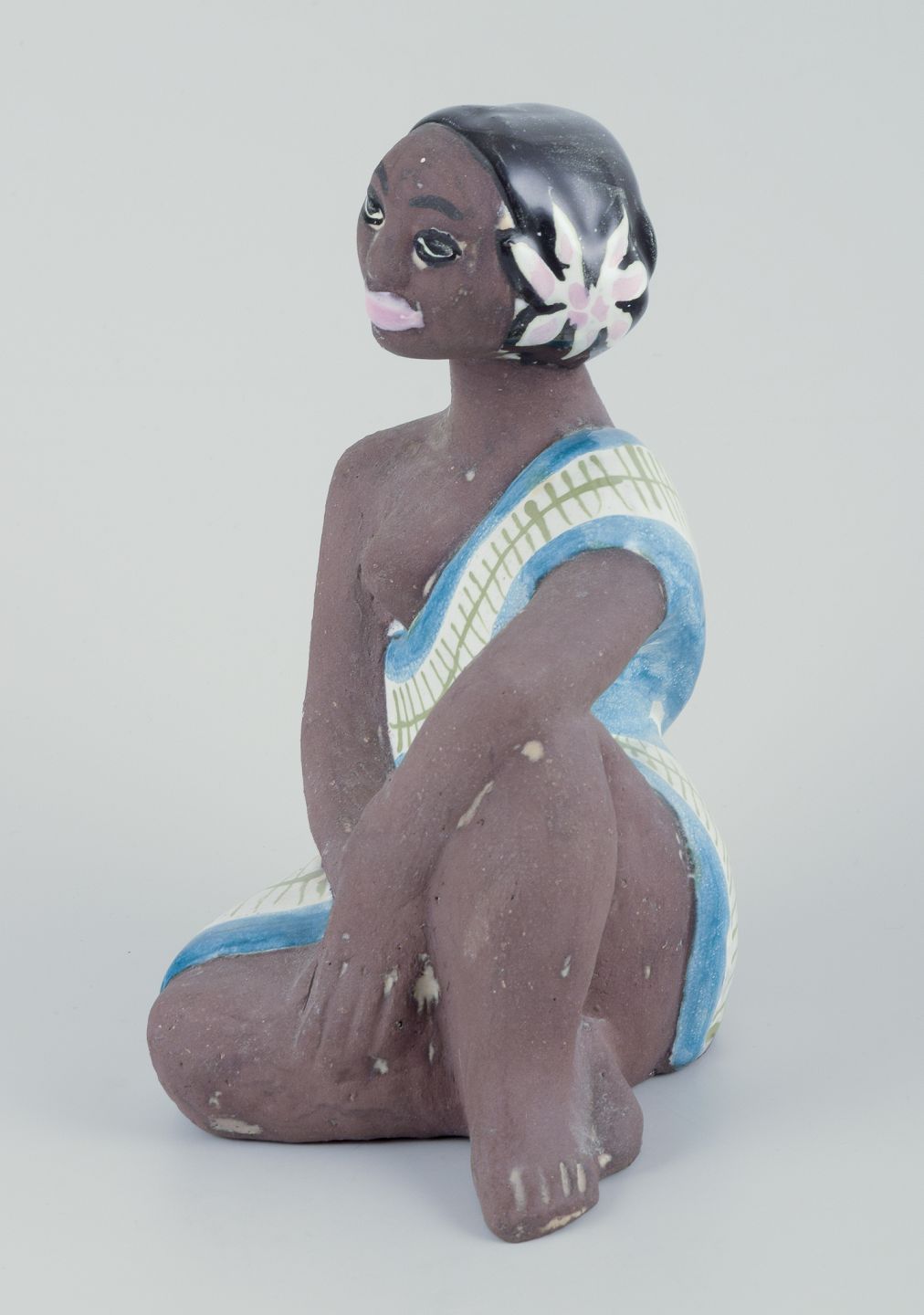 Figur af orientalsk kvinde. Glaseret stentøj.