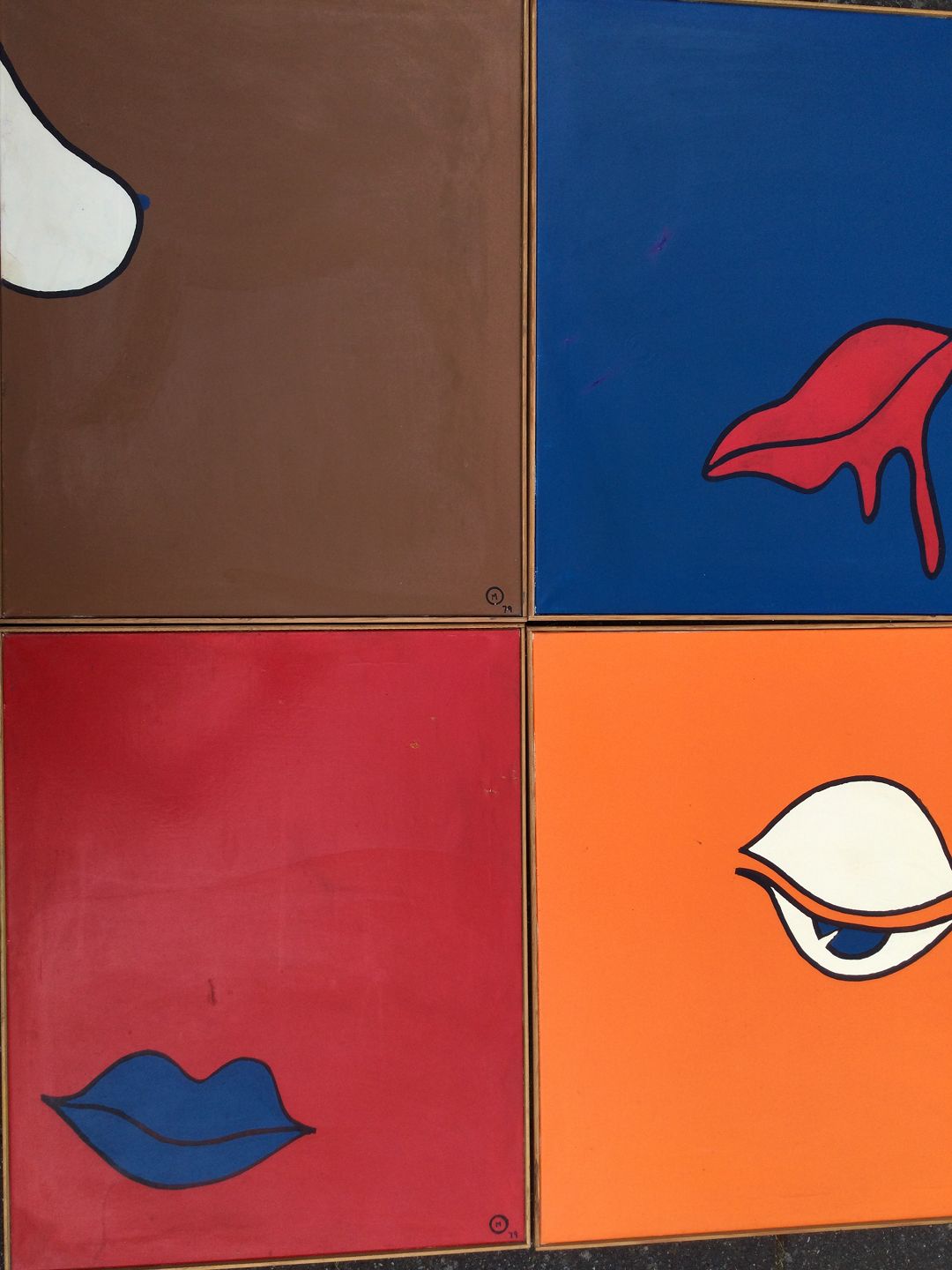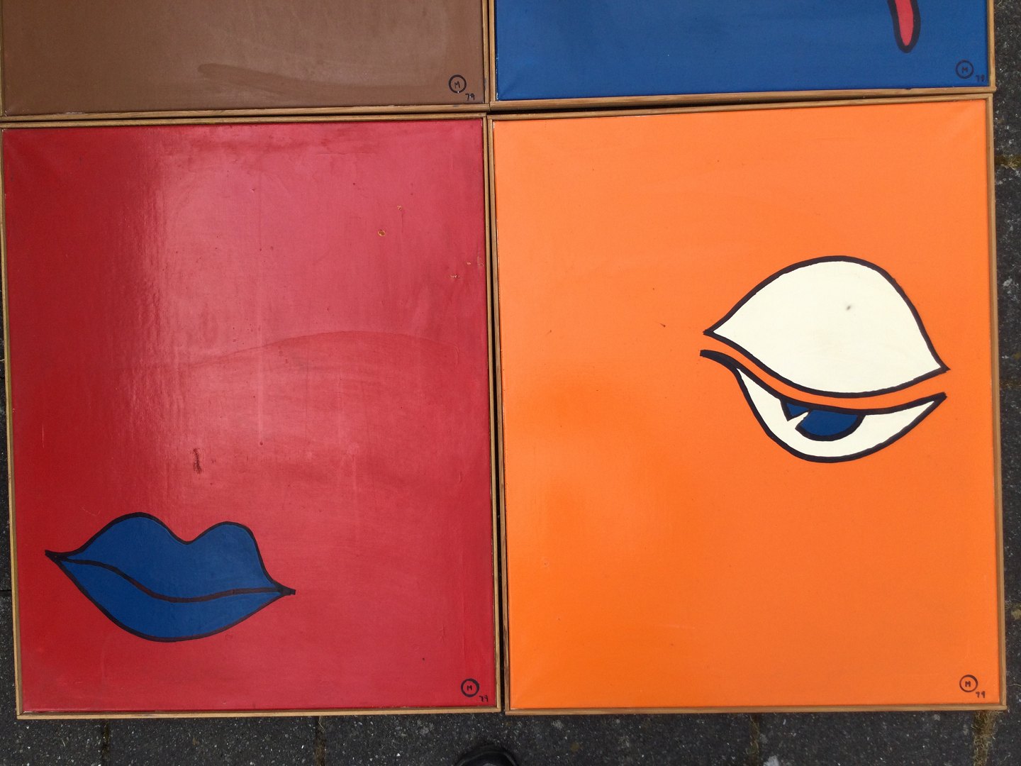 4 kompositioner i brunt, blåt, rødt og orange 1979