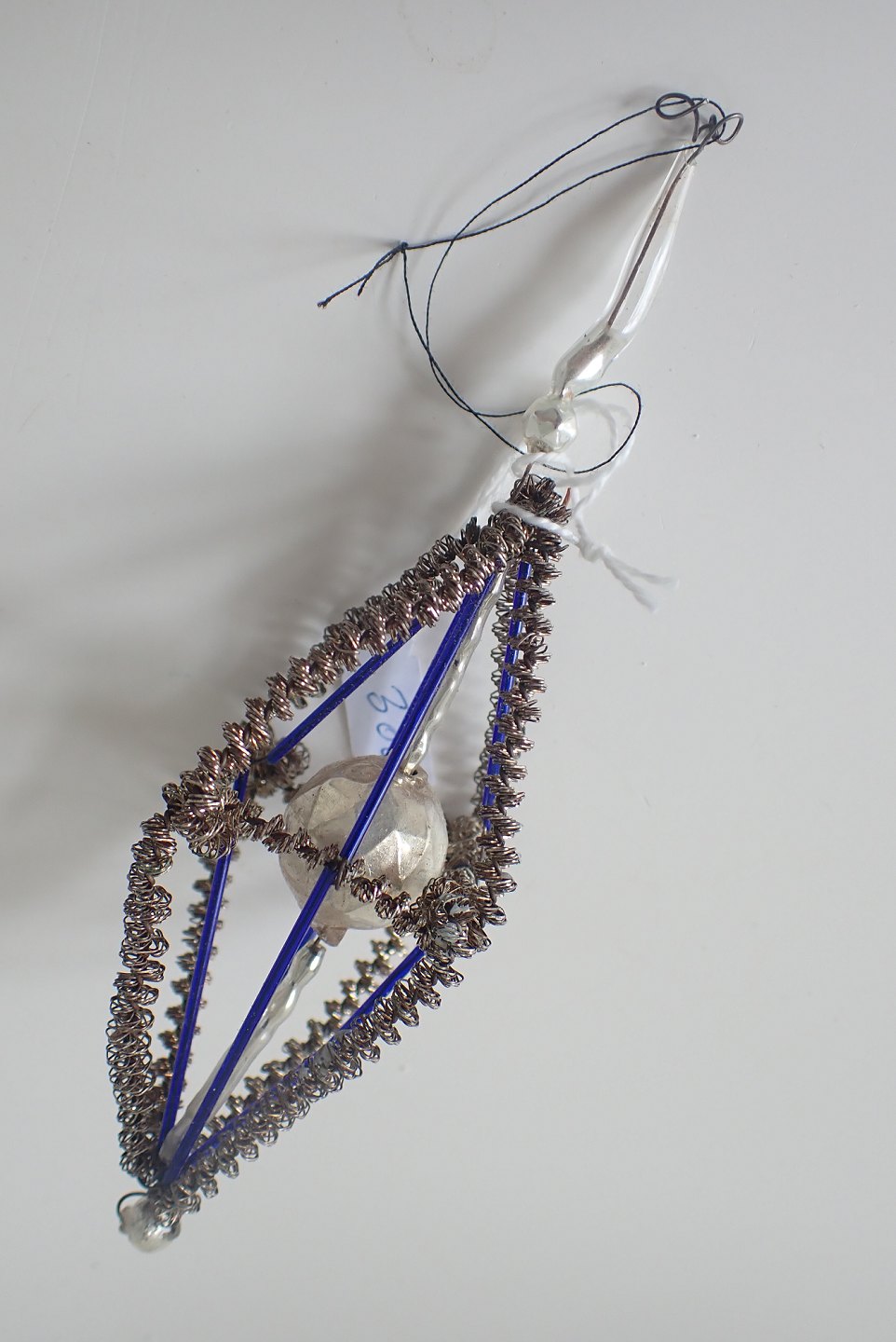 Nederst til venstre: Stjerne sammensat af glaskugler og glasrør. Ca. 1950. Pris: 95 kr.